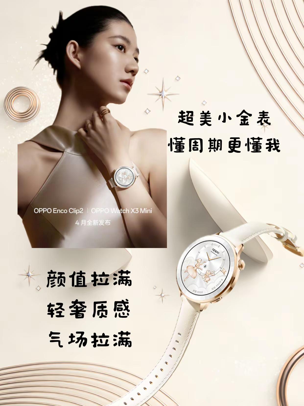 谁懂啊OPPO4月新品直接把数码做成高定首饰 谁懂啊家人们!OPPO 这波新品直接美到我原地尖叫!等了好久的小尺寸智能手表+耳夹耳机,终于官宣4月登场了!!✨超美小金表真的杀疯了OPPO Watch X3 Mini这哪里是手表啊,明明是自带轻奢 buff 的穿搭首饰!小尺寸表盘对细手腕女生不要太友好,再也不用戴大表盘像偷戴了男朋友的表😭白金配色+精致金色表冠,上手温柔又有气场,通勤约会戴都巨有质感不用额外搭首饰,一块表直接搞定全身穿搭氛围感,既是智能手表,也是万能配饰 💫超闪小金环耳机更是绝中绝OPPO Enco Clip2这波直接把耳机做成耳环了!孙颖莎同款超闪小金环,耳夹设计彻底告别入耳式的胀耳痛,轻到戴一天都完全无感戴在耳朵上就是超精致的耳饰,素颜戴都巨显气质,听歌臭美两不误一身金感双搭真的赢麻了!颜值和实力双双在线,OPPO 的审美真的从来没让人失望过!现在已经疯狂搓手手等上线了!现在已经开启预约!有没有一起蹲的!快来评论区猜猜最终价格,坐等惊喜揭晓~ oppowatchx3mini oppoencoclip2 oppo手表安卓表皇 oppo耳夹耳机百搭出片