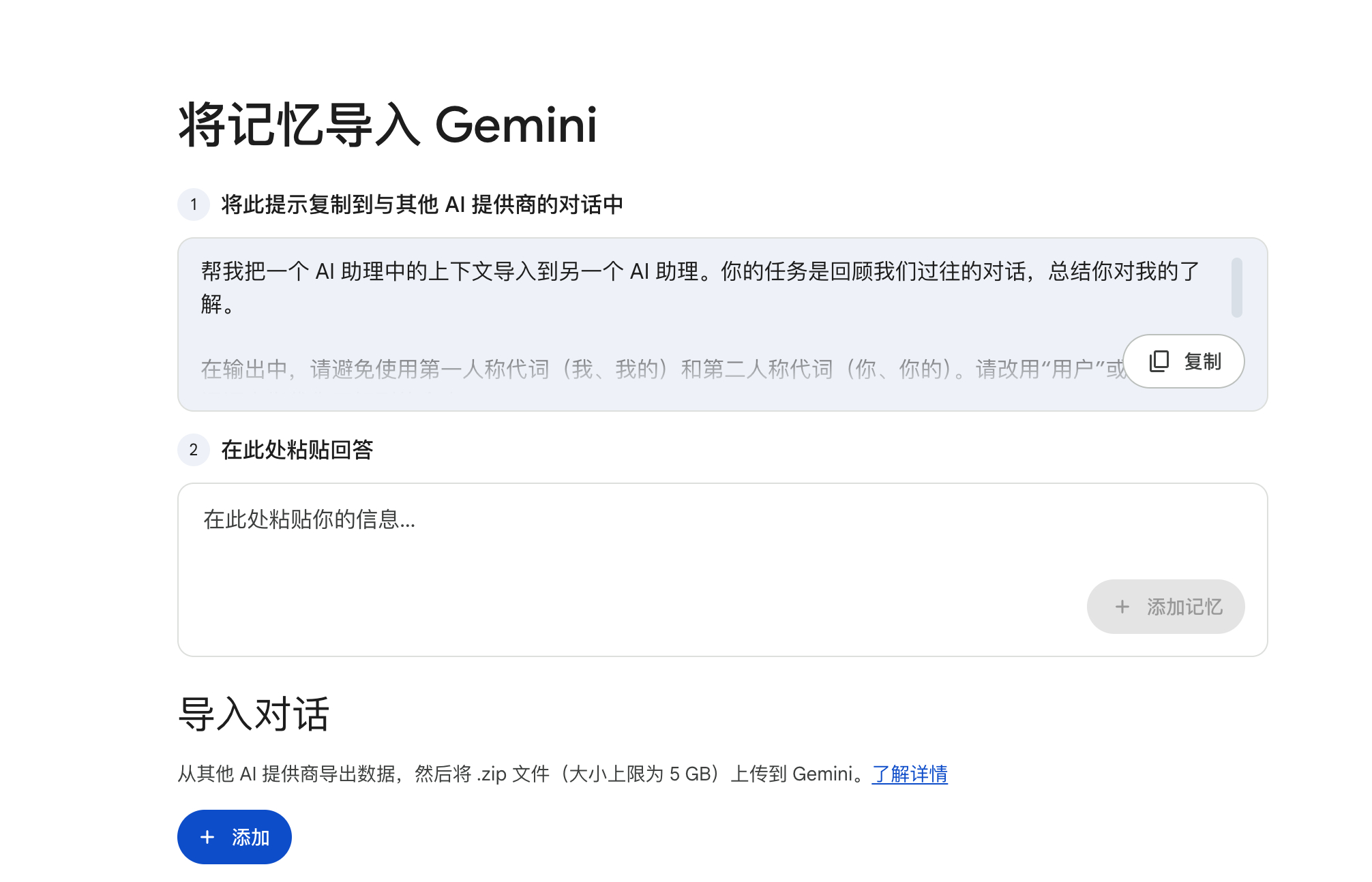 Gemini 出了个从其他 chatbot 导入记忆的功能,你猜猜它的提示词怎么写的 ?
