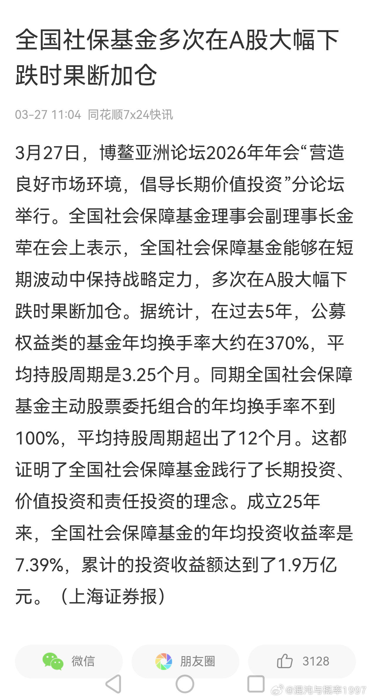社保基金多次在股市大跌时果断加仓伟大