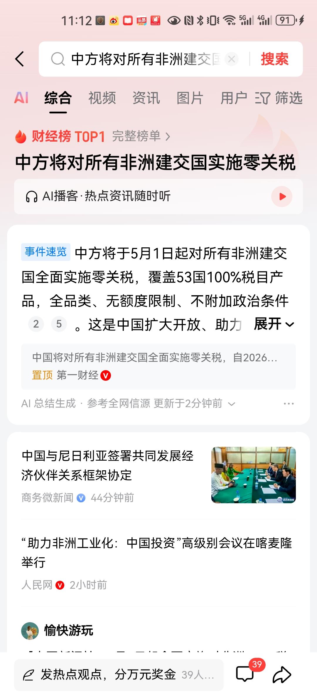我们宣布,对于非洲中的53国实施商品全零关税,也就意味着他们将来将商品出口到我国,不会再缴纳任何的关税。但是有可能我们的商品出口到非洲,还要缴纳一定的准关税,所以这是一个单方面的零关税政策。当然我们现在在非洲还是有着不少的贸易顺差,同样非洲广阔的市场潜力,也是全球能够看到的。未来50年到100年有可能得非洲者得全球。 现在全球的新兴市场已经不是很多了,而我国作为全球最大的制造业生产国和全球最大的制造业出口国,鼓励出海,鼓励全面出海,成为一个普遍的对外贸易和投资政策。这一次对非洲实施的零关税政策,也有助于我国对非洲的投资加速,有助于资本出海,也有助于我国的制造能力出海。 这个政策真的需要大气魄!大家觉得呢?