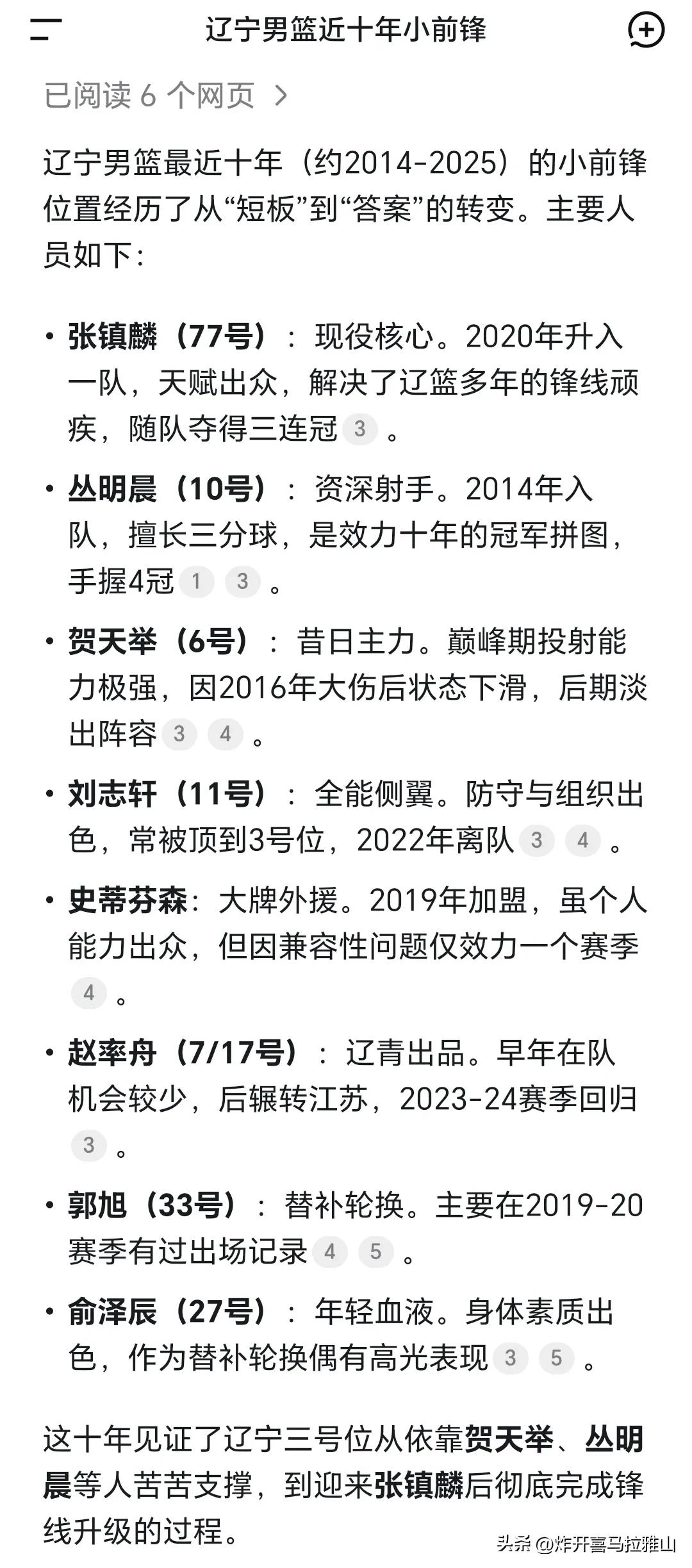 有很多辽宁球迷认为姜宇星不行,表现照比吉林队时期差多了。实际上不是他有多差,是球队结构问题。纵观辽宁队这15年甚至是20年,都是后卫和内线太强弱化小前锋的优点,又放大了小前锋的缺点。 杨鸣也说了姜宇星在吉林队有球权的,能持球进攻,擅长快攻反击转换,还有有顺下和传切,到了辽宁队以后持球的人太多,赵继伟,加上王岚嵚和威尔斯布罗金顿,有时候手帝还得比划两下,所以能到姜宇星手里的球权寥寥无几。逐渐的姜宇星落位蓝领3D球员,而姜宇星又是喜欢动起来打,他不是投手,所以三分球也是一般的球员,这就放大了他的缺点。 与姜宇星同病相怜的是赵率舟,郭旭和俞泽辰,这4个人在辽宁队打的纠结是没有防守也没有三分球,在球队中的作用非常弱化,其实他们实力不差的,到任何一个中游球队打都有很大潜力的,例如赵率舟在江苏队打出职业生涯最佳表现。 比他俩能好一点的是丛明晨和贺天举,但是他俩有三分没有防守。这也就有了杜峰那句话:贺天举没有防守,让周鹏和威姆斯马尚专门找贺天举这点打。 只有张镇麟和刘志轩打出不错的表现,张镇麟是有防守还有不错的运动能力,他的三分球也是没有被开发出来,时灵时不灵的。刘志轩也是被逼到打小前锋这个位置上的,那时候辽宁队实在没人了,同时也是辽宁队最受气的一段时间,被周鹏摁着打。刘志轩能持球有组织串联的能力,还有一定的三分球能力,所以他在辽宁队位置比较重要。 不是这些人不努力和实力不行,就是辽宁队的结构导致的,郭艾伦赵继伟,韩德君李晓旭,还有大小外援,都得要球权和开火权,能到小前锋手里的球权和出手机会寥寥无几,正因为如此张镇麟才选择出走上海队的。所以任何一个小前锋在辽宁队要想打出好的表现非常困难,这15年都是如此。我相信姜宇星要是去其他球队肯定要比辽宁队作用更大,表现也更好。 辽宁队球迷还是多理解一下姜宇星吧!辽宁男篮姜宇星