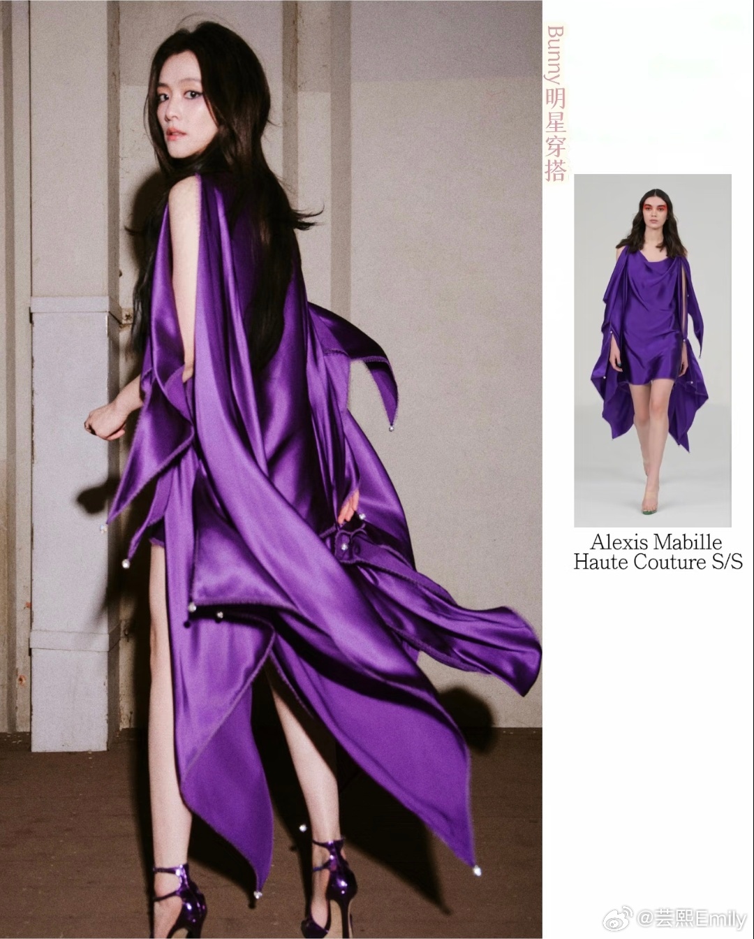 陈昊宇Redgala盛典出发图陈昊宇今日参加盛典,出发造型来啦,上身Alexis Mabille 2023春夏系列紫色礼服,不得不说紫色很迷人!紫色女神陈昊宇!