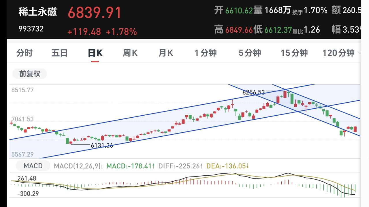 基金:为什么黄金坑大概率在下周 今天市场低开高走,中午收盘的时候,三大指数都是上涨,创业板指上涨了0.83%,收于3299点,上证指数上涨了0.26%,收于3899点。 今天中午的收盘点位很有意思,创业板指3299点,上证指数3899点,都不愿意再上涨一个点形成整数,今天盘中最高3902点,距离回补向下跳空缺口上沿的3955点还有一大段空间,指数还需要努力。 今天两市累计成交11406亿,相比于昨天同期缩量了7%,今天开盘的时候下跌,缩量的幅度更大,后面的反弹过程中,还是有部分资金进场的,但整体上来说,这样的进场资金量不够,不足以推动指数大幅度上涨。 中午收盘的时候,五天线位置是3882点,收盘点位3899点,收在五天线之上,下午继续观察,能不能站稳五天线。 今天的上涨,使得市场还处于星期二以来的反弹过程当中,这个反弹的过程还没有结束,但由于没有大批资金进场,这个反弹的高度有限,这一次反弹突破4000点的可能性不大,但回补缺口3955点的可能性很大。 持有基金现在盘中估值上涨了9430元,盈利金额最大的三个板块是:创新药板块,大消费板块,创业板指,亏损的只有海外互联网板块。 整个市场上涨幅度最大的三个板块是:锂矿板块,创新药板块,稀土永磁板块,下跌幅度最大的三个板块是:电力板块,存储芯片板块,煤炭板块。 稀土永磁板块今天大涨,但还是保持在日线级别下跌通道内,今天的上涨并没有能够突破日线级别下跌通道的上轨线,今天的上涨并没有能够改变日线级别的下跌趋势,短线持有的人还是需要注意风险。 稀土永磁板块周线级别处于上涨趋势破位中,前段时间下跌跌破了这个上涨通道的下轨线,最近一段时间都是在这个上涨通道下轨线下方震荡,今天的上涨并没有改变这个板块周线级别上涨趋势被破坏的状况,长线持有的人继续注意风险。 半导体材料设备板块日线级别处于下跌通道中,今天盘中最低点就是在这个下跌通道的下轨线上,今天的上涨并没有改变这个板块日线级别的下跌趋势,短线持有的人继续注意风险。 半导体材料设备板块周线级别处于上涨通道中,前几天的下跌跌破了这个上涨通道的下轨线,今天的上涨又来到了这个上涨通道的下轨线上,近期观察会不会有效破位这个上涨通道的下轨线,如果实现了有效破位,长线持有的人也需要注意风险。 商业航天板块日线级别处于下跌趋势中,前几天下跌跌破了日线级别下跌通道的下轨线,今天的上涨并没有能够重新回到原来的下跌通道内,现在还处于加速下跌的过程当中,短线持有的人需要注意风险。 商业航天板块周线级别处于上涨通道中,本周的最低点就在上涨通道下轨线附近,现在整体的位置距离上涨通道下轨线也不远,近期还是要观察会不会有效破位这个上涨通道的下轨线,如果有效破位了周线级别上涨通道的下轨线,长线持有的人需要注意风险。 今天大幅度上涨和大幅度下跌的可能性都不大,因为黄色线在蓝色线上方,两条线之间的敞口比较大,这样的情况下大跌的概率很小,又因为成交量相比于昨天是缩量,在上涨的过程当中没有资金进场,这表明即使反弹高度也不会很高,这就是今天没有大涨和大跌的主要原因,今天最有可能的走势就是小阴小阳收盘。 由于现在还处于反弹的过程当中,这个反弹的过程就是一个诱多的过程,但有大批散户跟风进场以后,这个反弹也就会结束,反弹结束以后的那一轮下跌,才是我们需要等待的,那里才有可能是今年的一个黄金坑,这个黄金坑的来临最快在下周,时间的长短,主要是看现在反弹的强度,反弹力度越强,时间就越长,反弹时间越弱,时间就越短。我还有六成多的仓位在等待这个黄金坑,你还有多少仓位在等待这个黄金坑。 当然,我们现在还是两手准备,如果有黄金坑,我们就抓住这个黄金坑,如果就此大幅度上涨上去,形成新的上涨趋势,我们还是会追涨进场,在阶段性上涨来临之前进场是我们近期最重要的事情。 大家帮忙评论点赞,转发和分享,谢谢大家的支持,很多人只看不点赞,很多人只看不评论,这样的人都不够朋友。