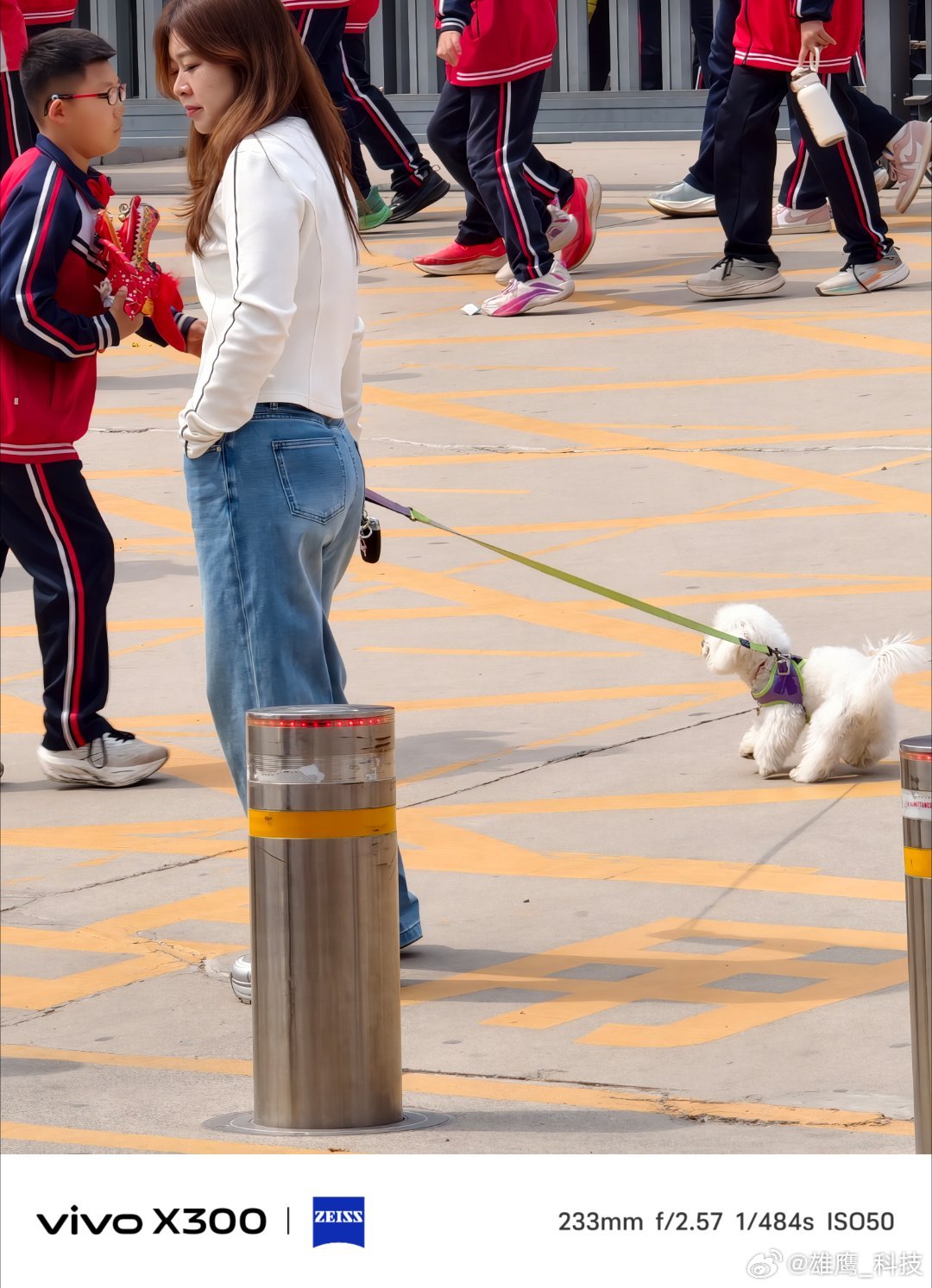 vivo 放学的校门口,她牵着一团软乎乎的小白狗,小狗调皮可爱,当看到它的小主人,小狗蹲在脚边不肯挪步,她低头笑着、看着,这个画面感觉好幸福。手机随手拍vivo 幸福