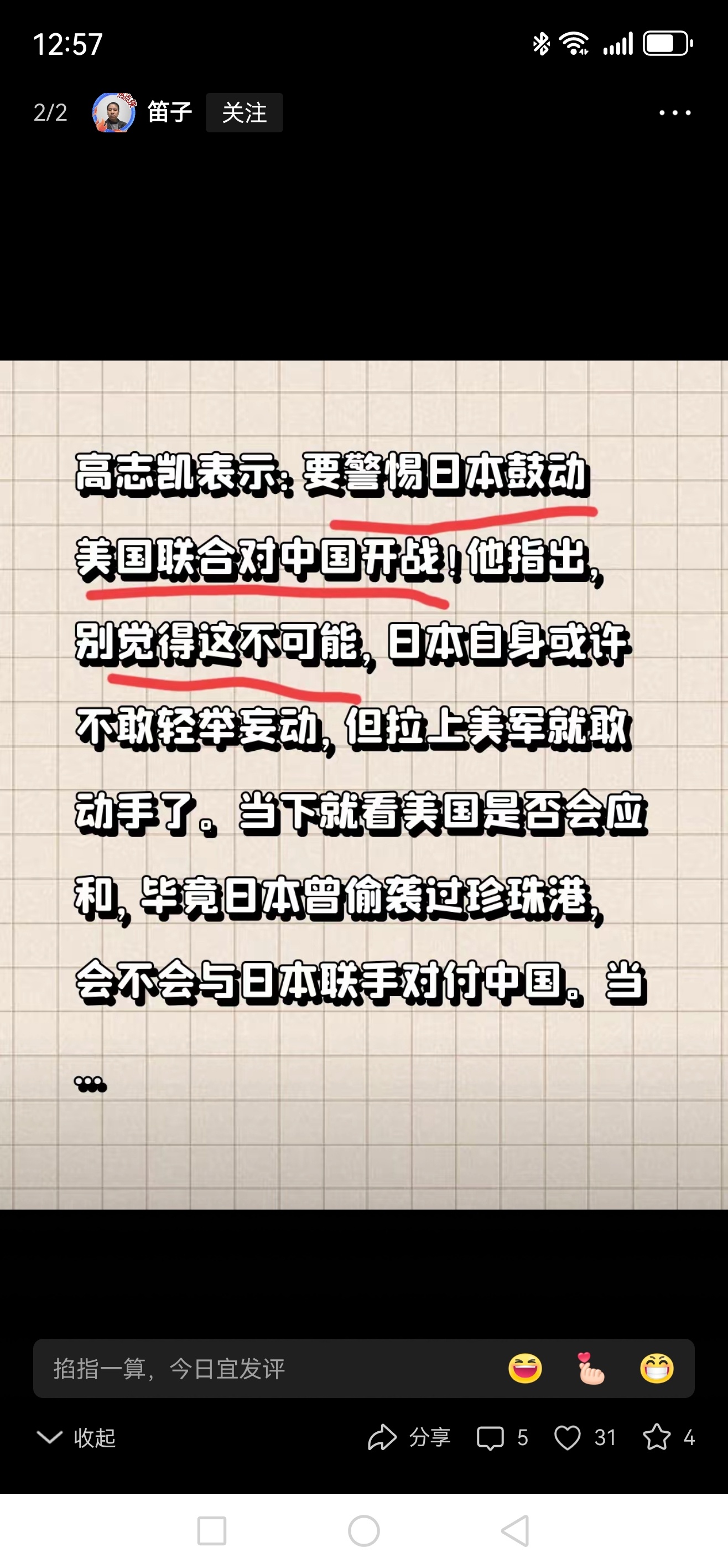 高志凯表示:要警惕日本鼓动美国联合对中国开战!