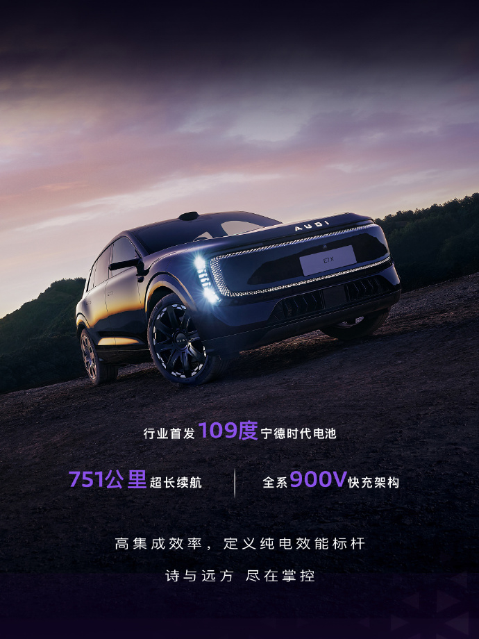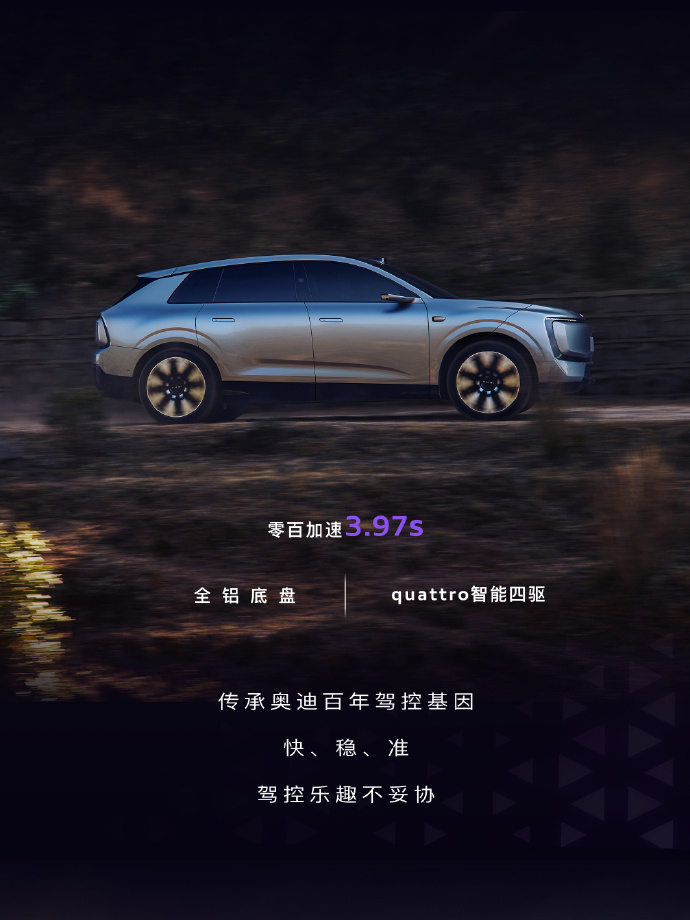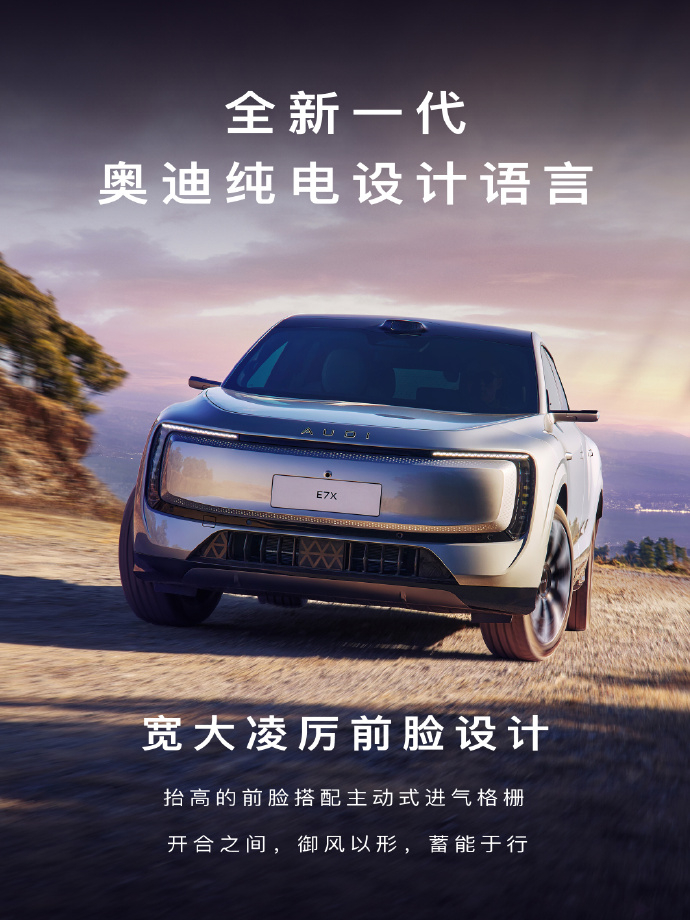 现在新势力造车,喜欢把参数堆得高高的,但参数好看,不等于技术下放。什么叫技术下放?看看奥迪德国总部放了什么车就明白了,Concept C定设计方向,F1赛车R26定性能方向,奥迪E5定电动方向。这三样东西,最后都指向同一台车奥迪E7X你看它身上的东西:109度宁德时代大电池,900V高压超充平台,能量管理效率直接拉满。主动进气格栅,动态调整风阻,跟F1赛车的逻辑一模一样,甚至还升级了quattro 2.0全时智能四驱底盘和后轮转向功能,驾控更稳转向更灵活,这些越级的技术正是E7X从容的底气。还有F1同款供应商的前255后285的高性能22吋鸳鸯胎配置。这些东西单拎出来,你可能觉得没啥。但组合在一起,就是从赛道到公路的实锤。这不是简单的堆参数,是把赛道上验证过的逻辑,搬到了量产车上。所以E7X为什么强?是因为它承载了奥迪百年的造车经验和面向电动时代的决心,太期待了。奥迪E7X新公路之王