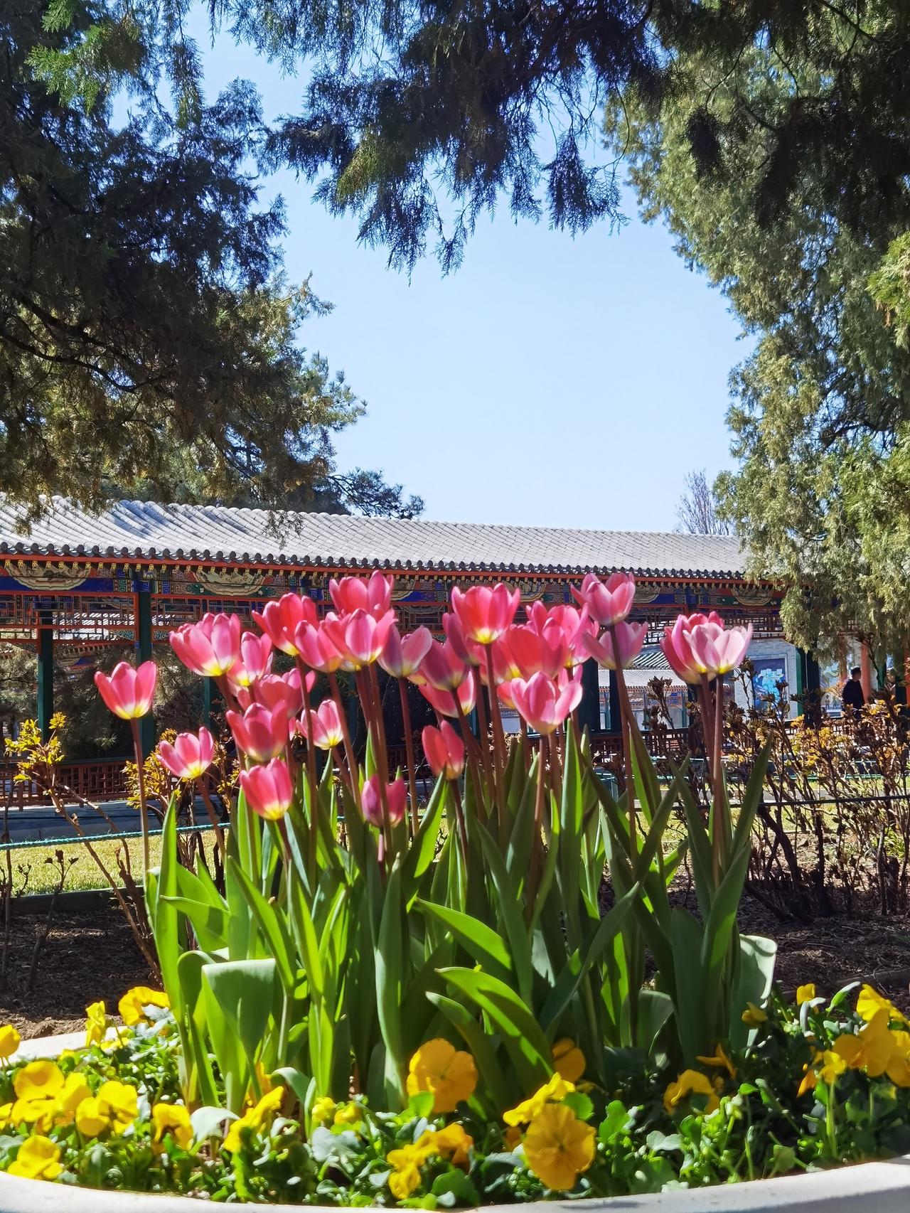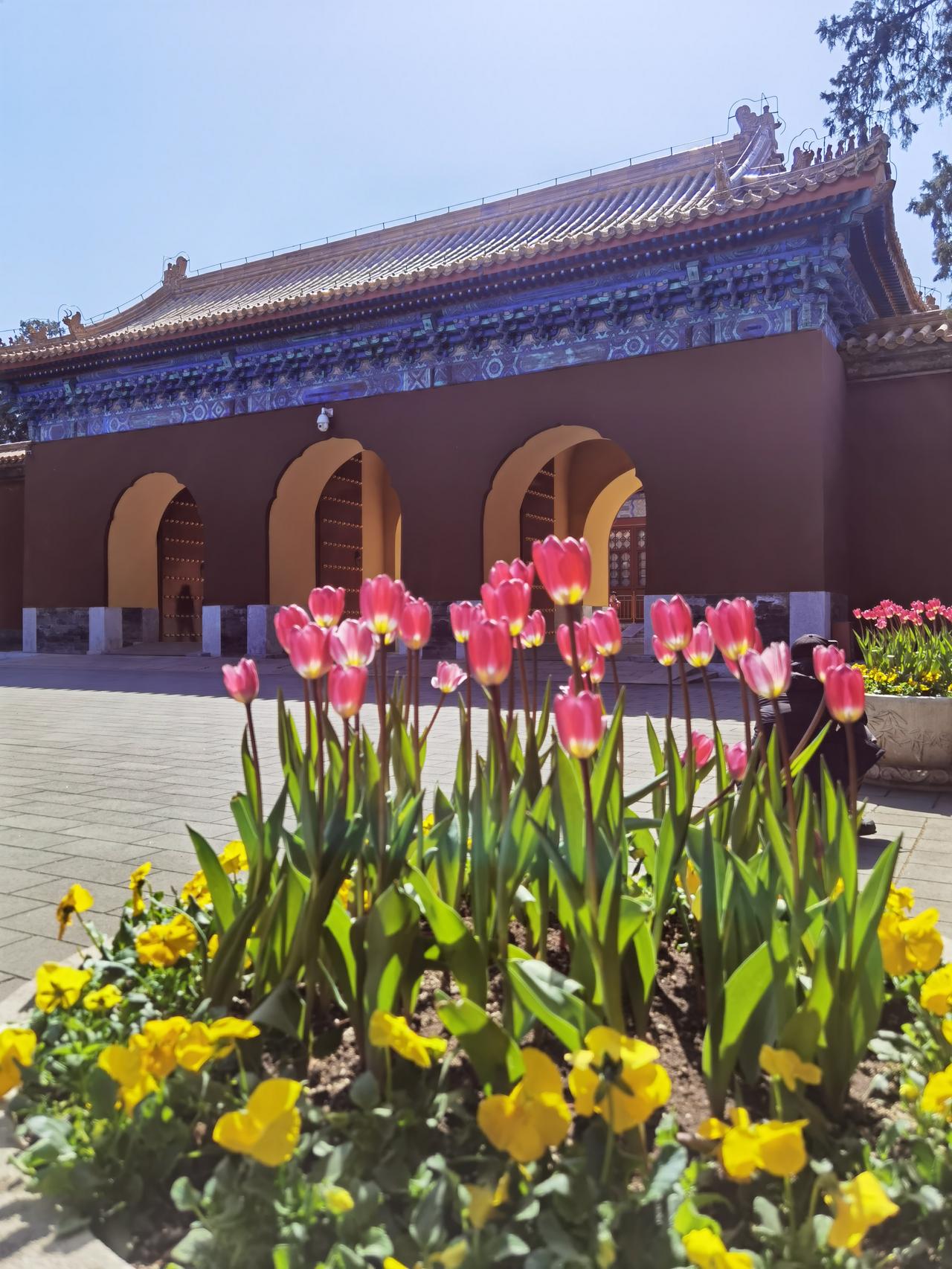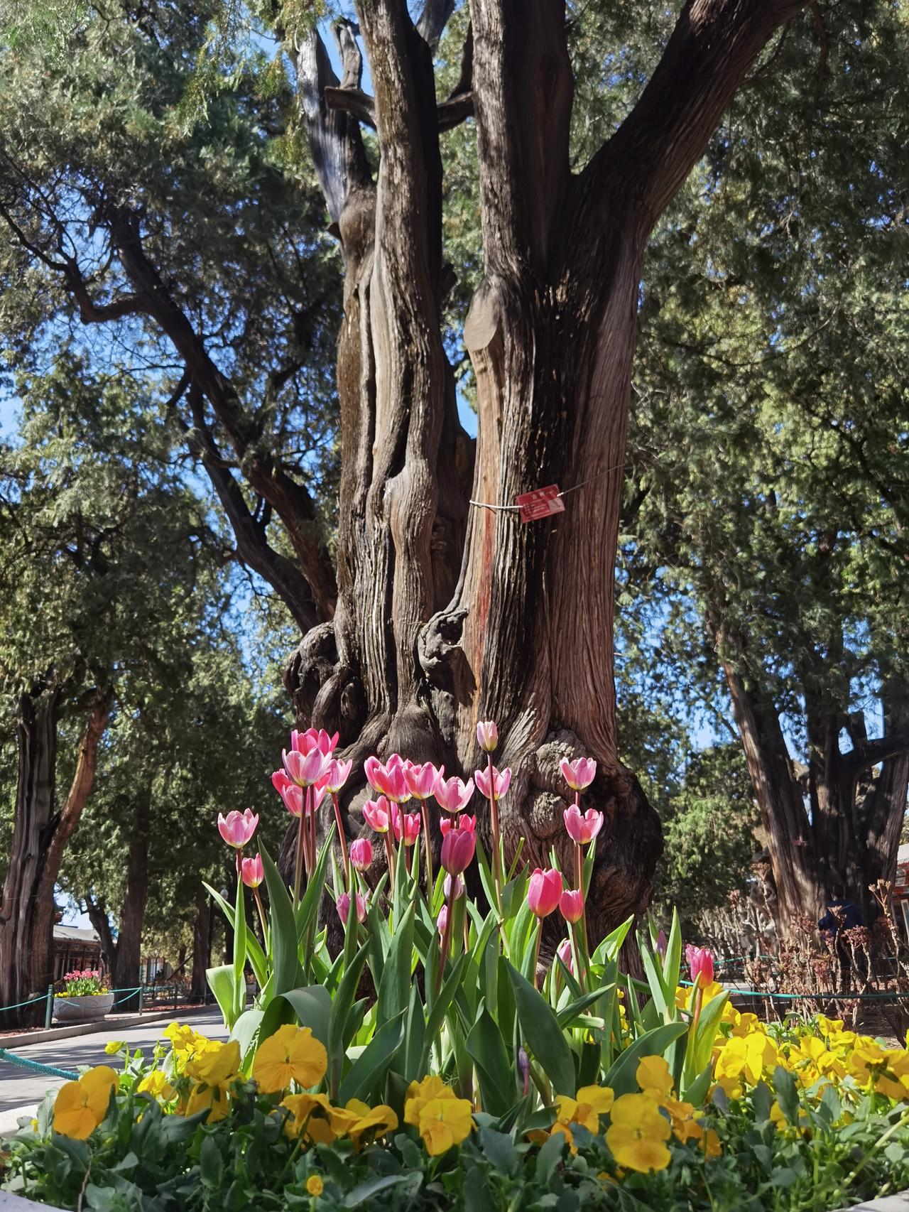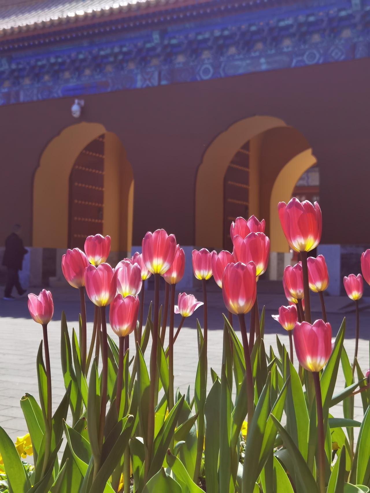 北京中山公园真的很不错,可以赏玉兰(之前已介绍),还可以赏郁金香,还可以赏竹。 中山公园紧邻故宫,许是故宫名气太大的原因,这里被绝大多数人所忽视。其实这里还是很值得一看的,特别是春色满园时。 此时正是中山公园郁金香节,公园内处处是盛开的郁金香。郁金香与几百年的翠柏的混搭很出片。另外园内的红墙、红柱与绿竹也会拍出别有味道的春景图。