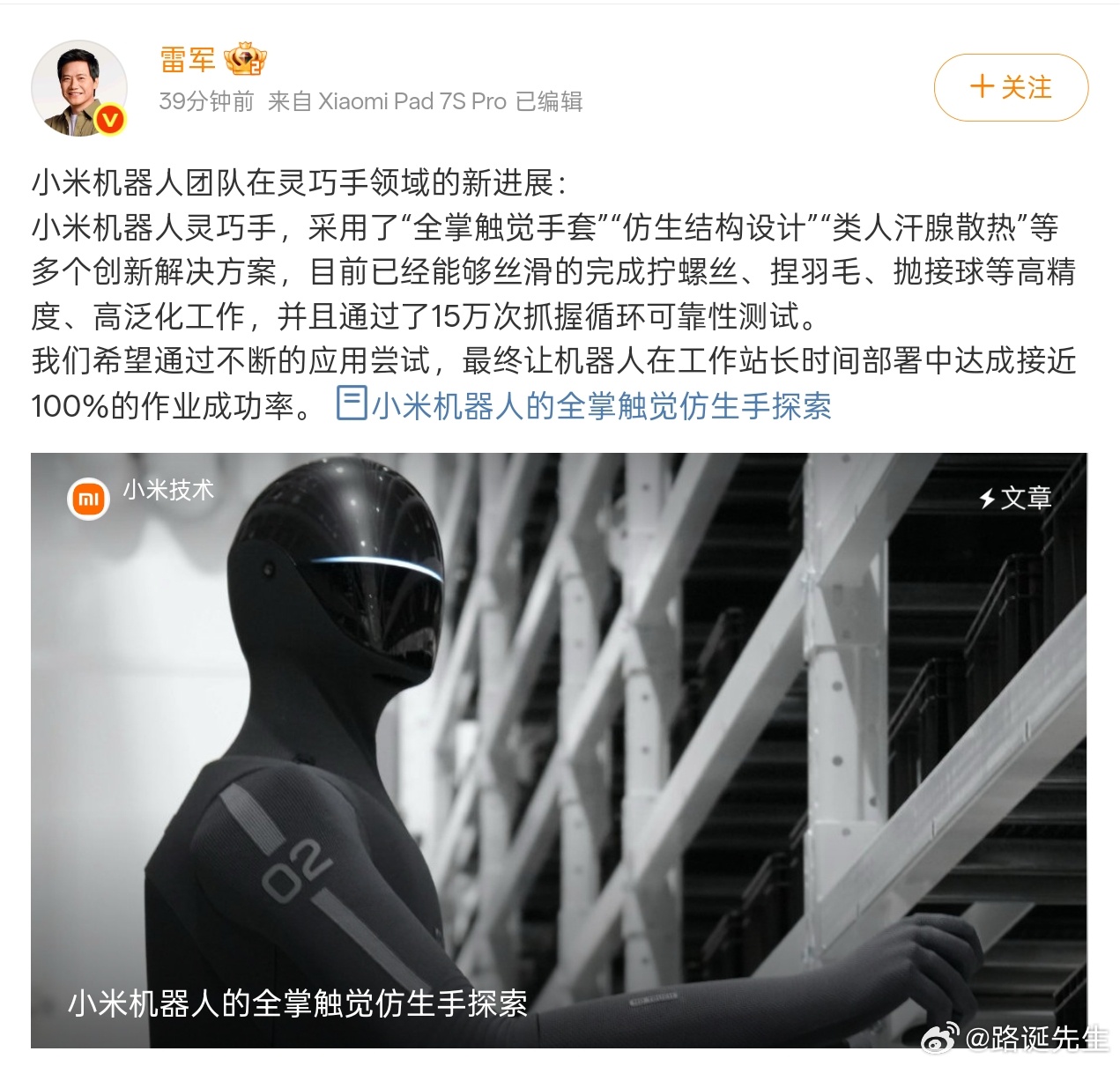 小米机器人灵巧手解决方案首次公开敢于公开,这是来自于技术自信的体现,是格局,也是技术实力的展示。小米最近各种自研如雨后春笋,已经有点大哥风范了。