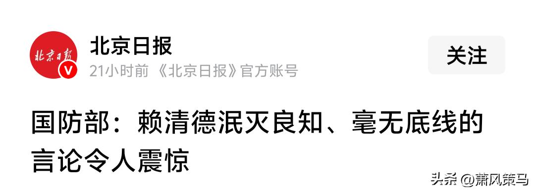 国防部重磅发声,直接戳穿赖清德的无耻嘴脸! 他公然美化日本殖民统治,声称当年是为了“东亚共荣圈”,无视数十万台湾同胞被残害的血泪历史,这种媚日恋殖、数典忘祖的行径,彻底暴露其毫无底线、泯灭良知的丑恶面目。 蒋斌大校严厉斥责,赖清德就是民族败类,注定被永远钉在历史耻辱柱上,遭全体中华儿女唾弃!
