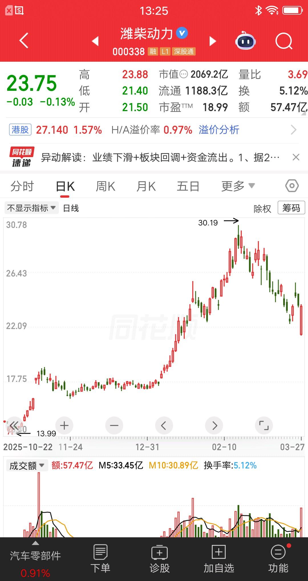 一位甘肃股民在今天集合竞价的时候,就买入了潍柴动力4000股,花了大约8.6万元。你们猜结果如何,还真被他抄到底了。他在下午开盘后,就在评论区分享了自己的心得。 他是这样说的,周四盘后按照惯例复盘,发现潍柴动力发布了25年报,于是就加入了自选股。他本来只是想看看,股价会怎么走,没想到竞价阶段就逼近跌停了。他眼前一亮,觉得这是抄底的好机会,别人恐惧我贪婪,于是果断买进了。 竞价的结果是大跌9.59%,价格是21.5元。开盘后股价持续反弹,目前在0轴附近运行。他当日浮盈近10个点,相当于吃了一个反向涨停板。他自然是很开心的,简直就是神来之笔。 评论区有人在羡慕他理解力超强,有人说他只是运气好有啥好炫耀的。 股价后面会怎么样,没人会知道。有可能当天就回落了,下周一再低开,搞不好白欢喜一场。 大家怎么看,觉得他最终能赚钱吗?