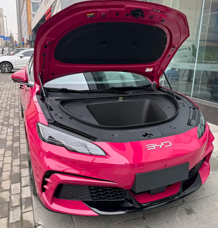 海豹06GT闪充版到店,升级326马力+怀挡,配天神之眼B+云辇-C 从实车图来看,26款海豹06GT延续了“小钢炮”的造型设计。低趴、俯冲的封闭式车头两隆起上扬的“灵犀之眼”前大灯,底部前包围处采用三段式的进气口造型,内部辅以熏黑蜂窝状元素,而两侧导风槽处还加入风刀装饰,再搭配突出的运动前铲,战斗感呼之欲出。 不同的是,车顶将提供激光雷达,也就意味着天神之眼 B不会缺席,支持城市领航辅助,另外天神之眼 C或仍为标配。而更大的前备箱也将支持“敲一敲”开启或前翼子板按键开启。 车身侧面继续采用动感的两厢车造型,再配合19英寸熏黑花瓣式轮毂+红色刹车卡钳、尾部大尺寸不规则尾翼,以及后包围处夸张的熏黑扩散器等,进一步提升了性能感。而悬浮式车顶、隐藏式门把手、“光环涟漪”贯穿尾灯+发光logo等均没有缺席,继续强调时尚前卫属性,并将新增一款与小米SU7“璀璨洋红”类似的“波西亚玫红”配色,而“闪充”、红色“天神之眼”尾标也表明了不同身份。 内饰也延续了多层次感的环抱式座舱,配备15.6英寸悬浮式中控大屏、10.25英寸仪表屏以及W-HUD抬头显示,营造出科技氛围,并升级智能座舱高阶版-DiLink 150。另外还换装了电子怀挡,随之副仪表台进行重新设计,依次配备空调出风口、50W手机无线快充、一排物理按键、双杯架以及智能冷暖冰箱等。 其余配置方面,诸如前排座椅电动调节/通风/加热、沉浸式氛围灯、12扬丹拿音响、全景天幕+遮阳帘、电动尾门等舒适配置应该也均不会缺席。 至于动力方面,26款海豹06GT将换装最大功率为200kW、240kW(326马力)的后驱电机,续航里程也升级为520km、620km,此外还将配备第二代刀片电池+闪充、云辇-C智能阻尼车身控制系统+预瞄功能、TBC高速爆胎稳定控制系统等。底盘或仍为前麦弗逊/后五连杆式独立悬架。