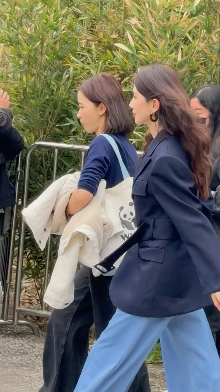 刘亦菲这条裤子挺养生,毕竟降温了肚脐眼必须护住啊