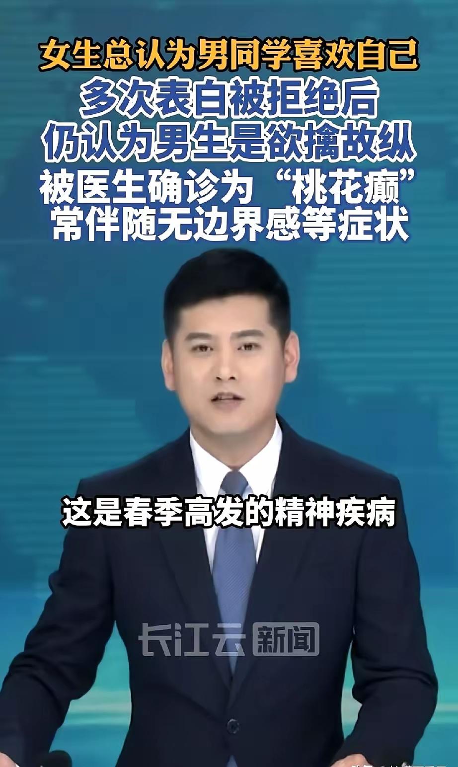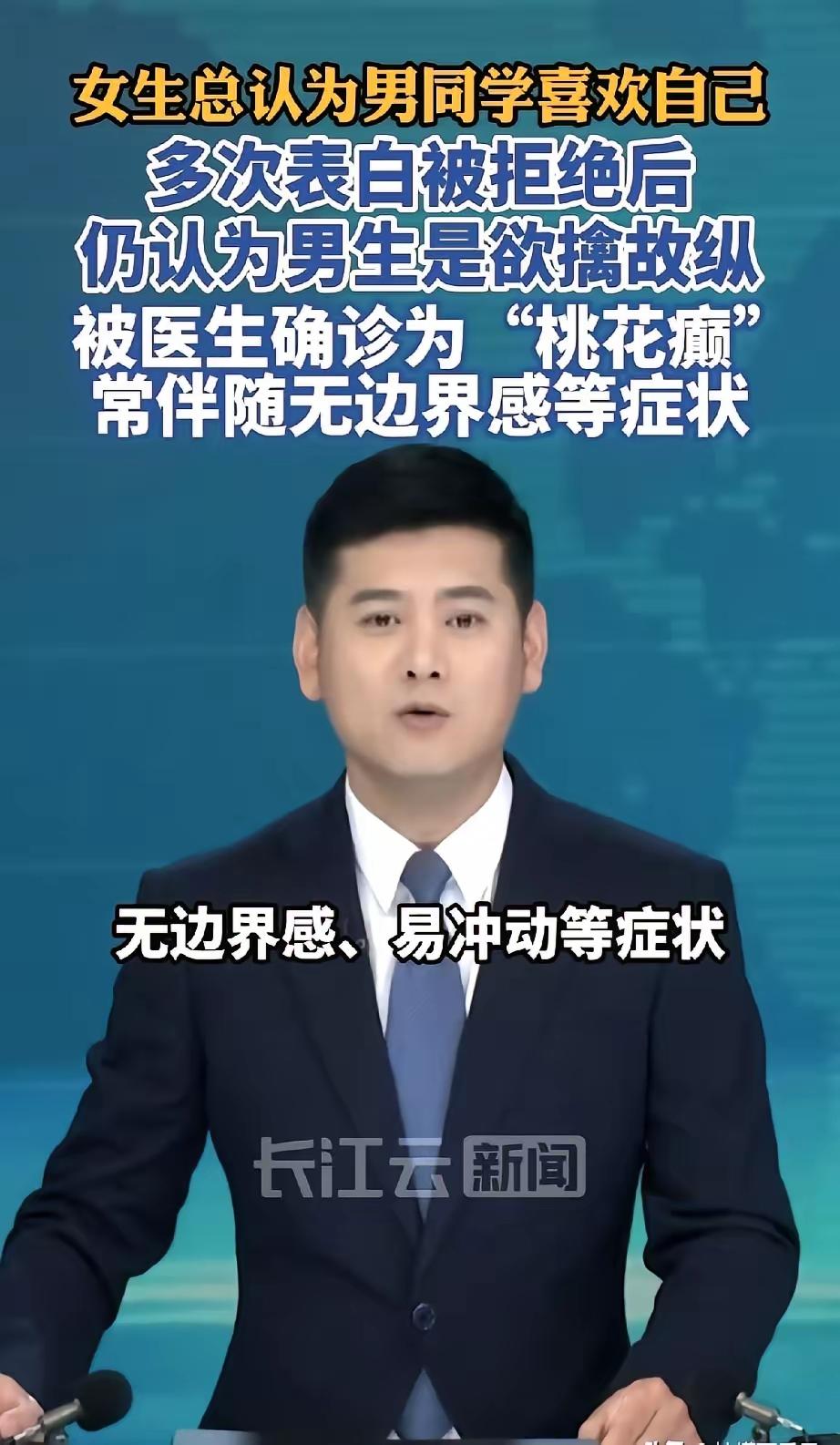 江苏淮安17岁少女晓雯,认为班上所有男生都暗恋她;被当面拒绝还认为是对方欲擒故纵。家长送医后确诊了:桃花癫! 起因是江苏淮安有一高二女生晓雯,她经常会过度解读男生的微表情,不管是男生对她点头还是对视,甚至就是擦肩而过,她都同意解读为“他对我有意思”。 看着那么多男生对她“有意思”却不出招,她开始主动向对方表白挑明,结果却被人一再拒绝。被人拒绝后,她又幻想这是对方对她欲擒故纵的手段,反而更加执着地缠着对方,甚至还到楼下大喊人家的名字。 这样的事情多了,给男生带来很多的困扰。家长也终于发现事情可能不对,到医院经过诊治,确诊为钟情妄想症,是狂躁症的一种,民间称之为“桃花癫”。 这可不仅仅是恋爱脑啊,而是一种容易被忽视的心理问题。 这种“桃花癫”的案例,看着挺极端,但其实折射出一个很多人都有的痛点:把自己的期待,当成了世界的真相。 生活里不少人也会犯类似的糊涂,只是程度轻重不同。总爱自我感动式脑补,把礼貌当好感,把客气当心意,活在自己编织的假象里不肯醒。分不清幻想和现实,最后不仅为难了别人,也困住了自己,及时认清现实,才是对自己最好的成全。