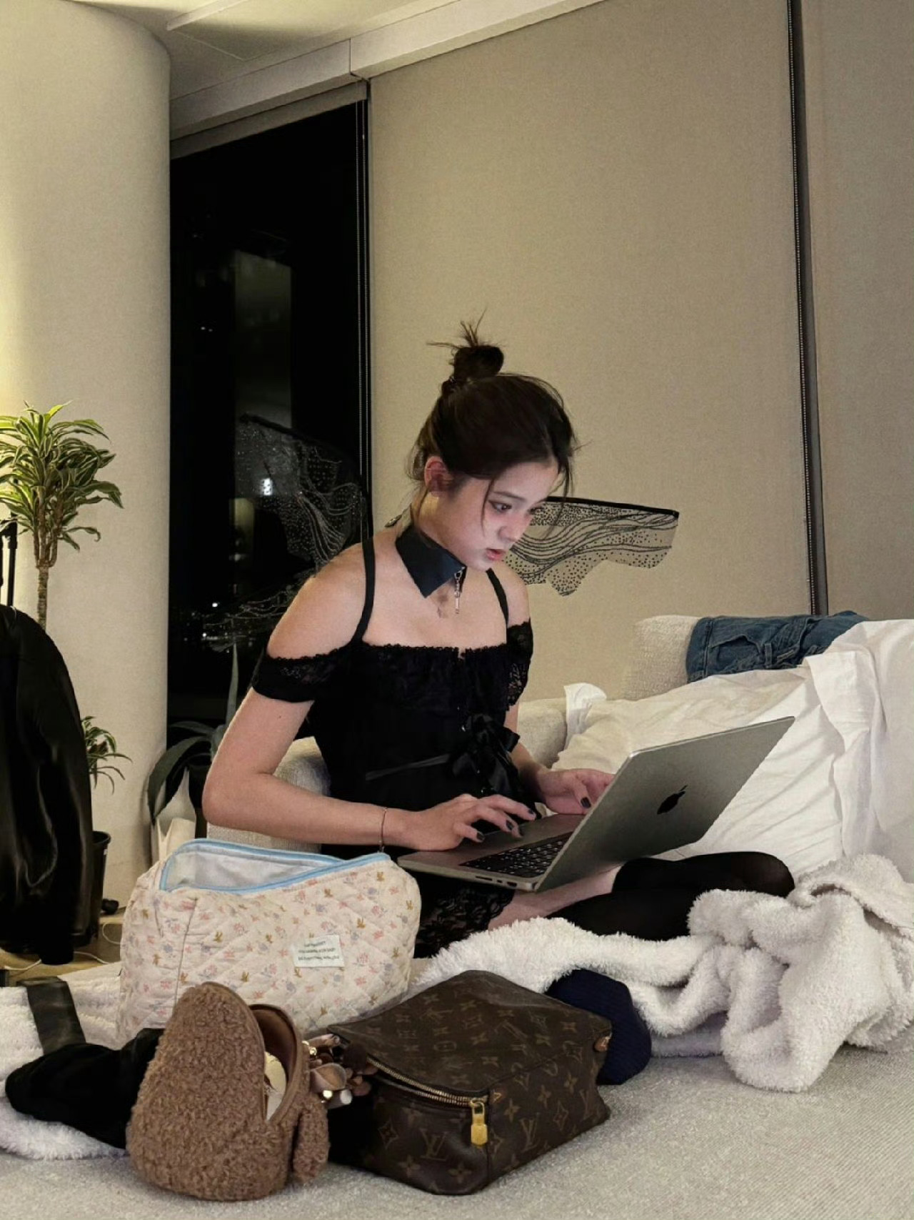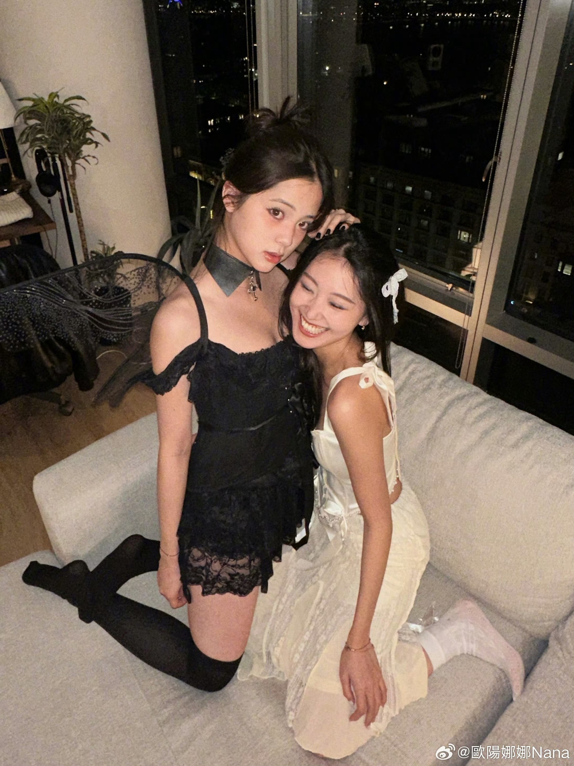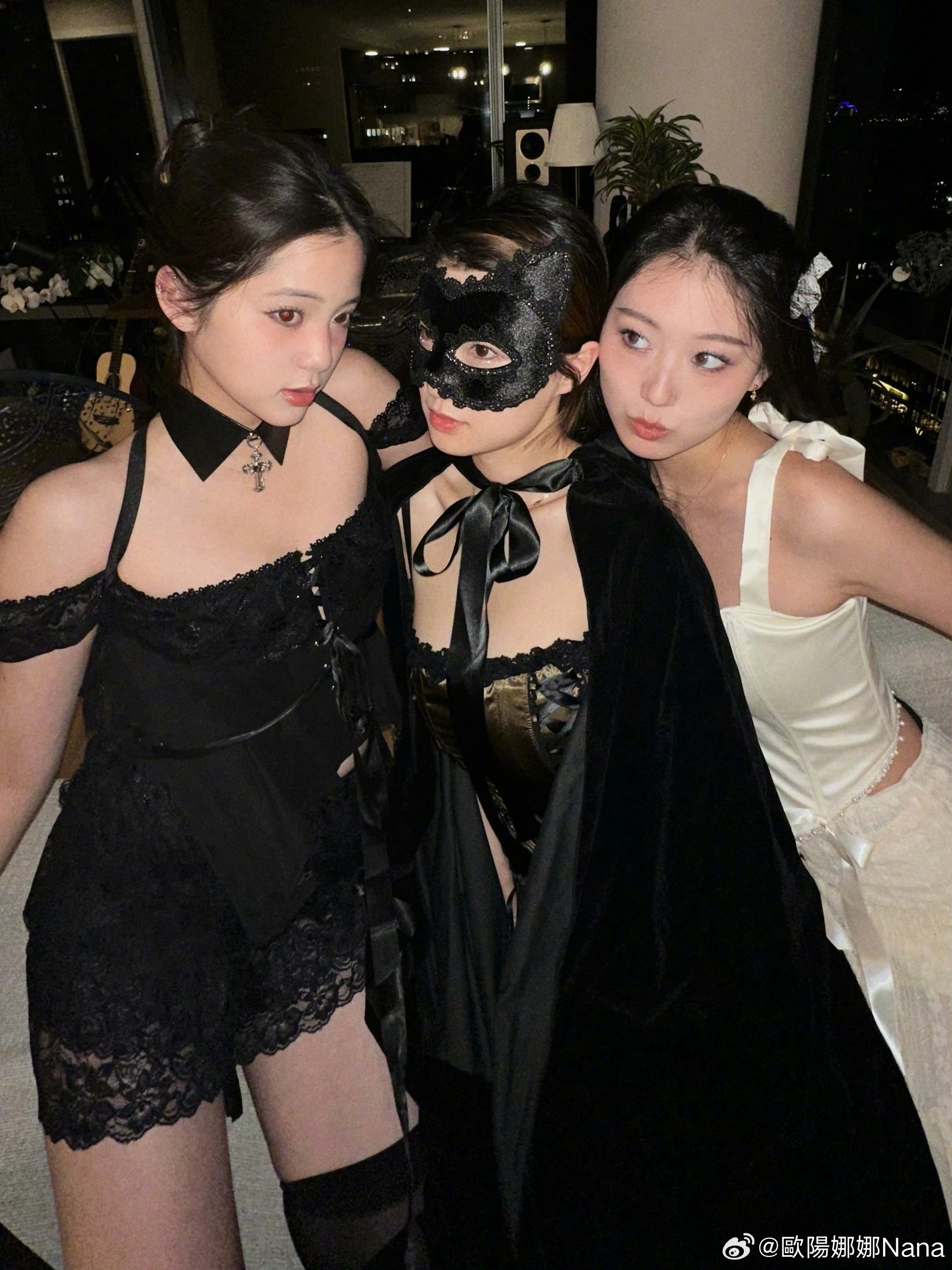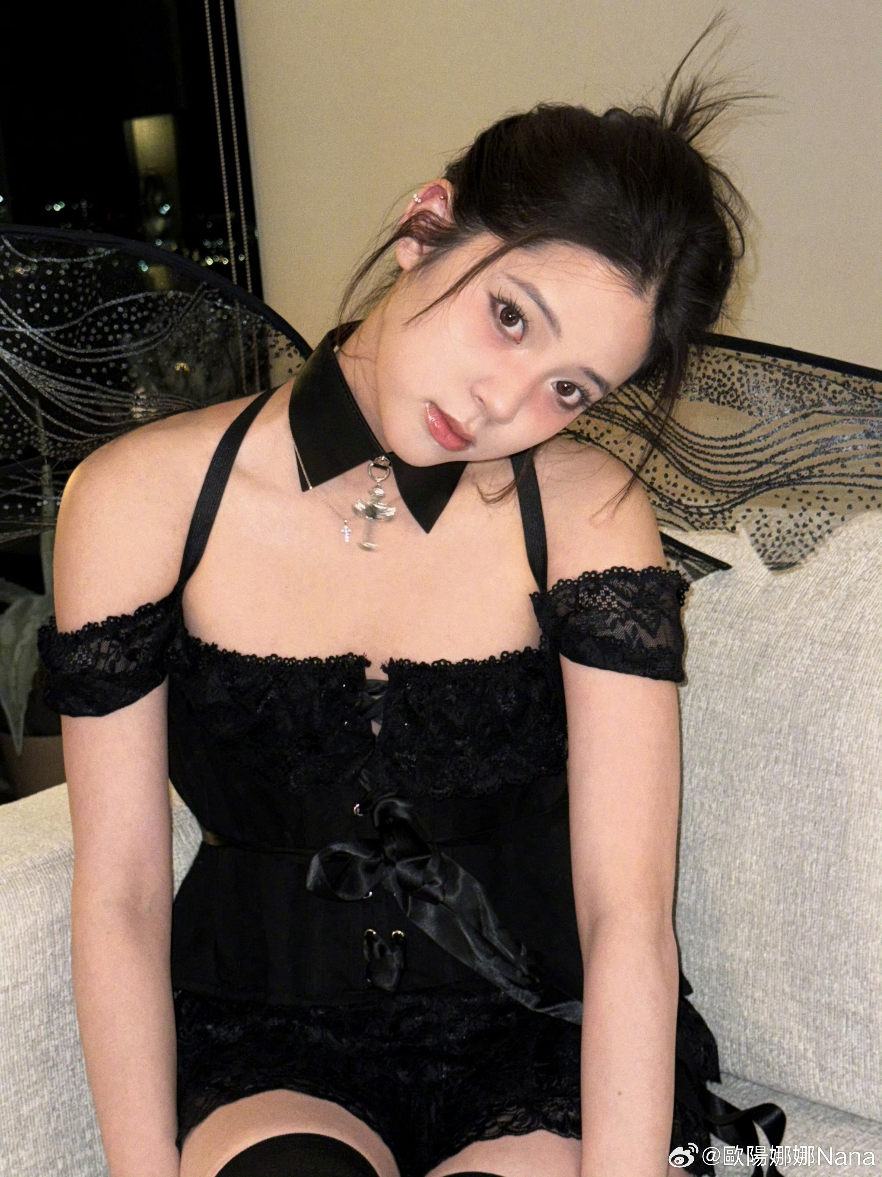 欧阳娜娜黑色蕾丝套装 好有情趣