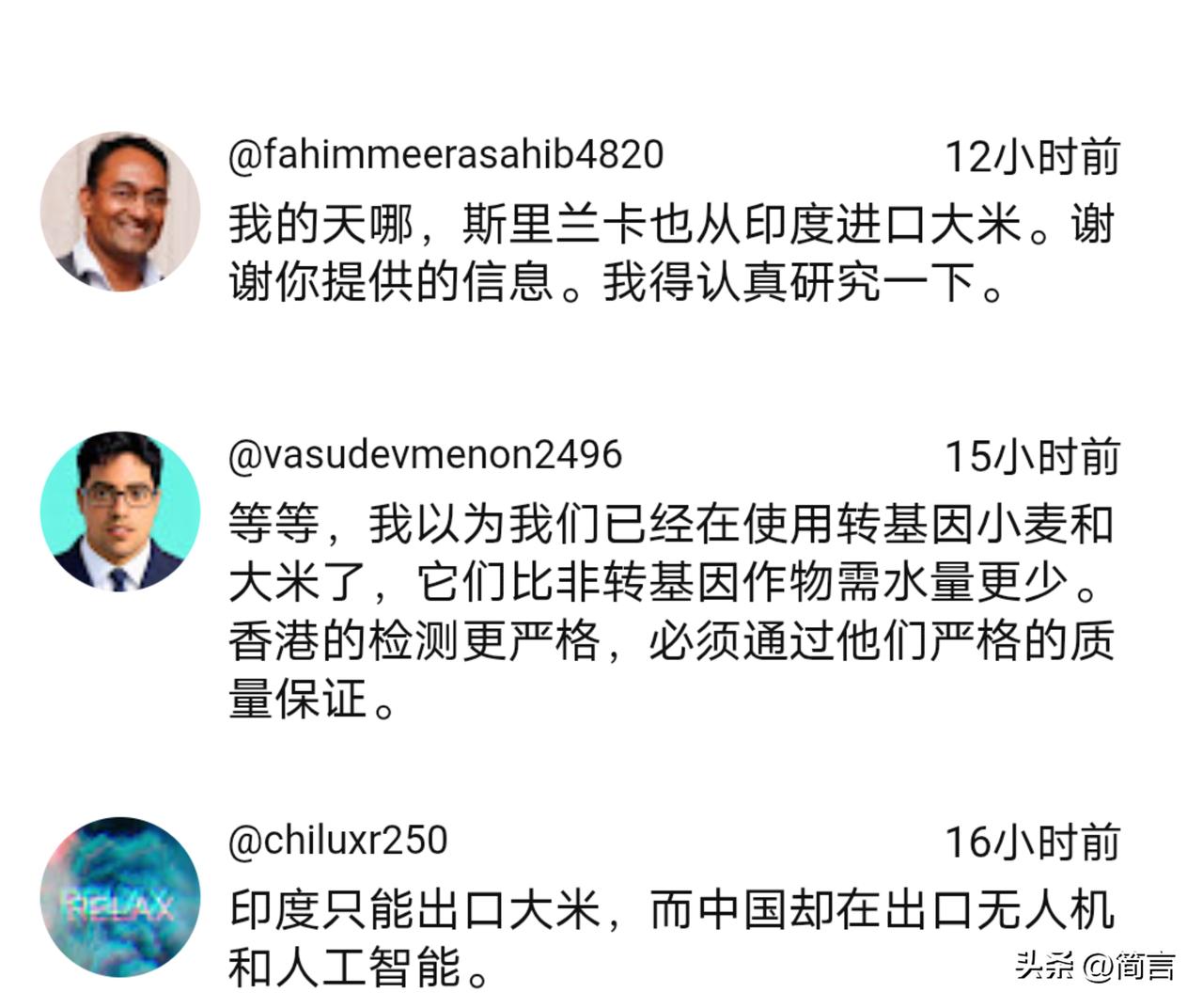 3船大米被中国拒收!印网友:印度在农作物中使用化肥和农药。 据印媒3月26日报道,至少3船印度非巴斯马蒂大米在入境检测中被发现含有转基因成分,因不符合中国食品安全标准被拒收或退运。印度目前仅批准了转基因棉花商业化种植,理论上大米应为非转基因。印媒认为,此举正值印度对华大米出口大幅度增长之际,会令粮食出口商遭受损失。 闻讯后的印网友认为,印度的农产品农残物超标被中国拒收在情理之中,提高产品质量才是硬道理…