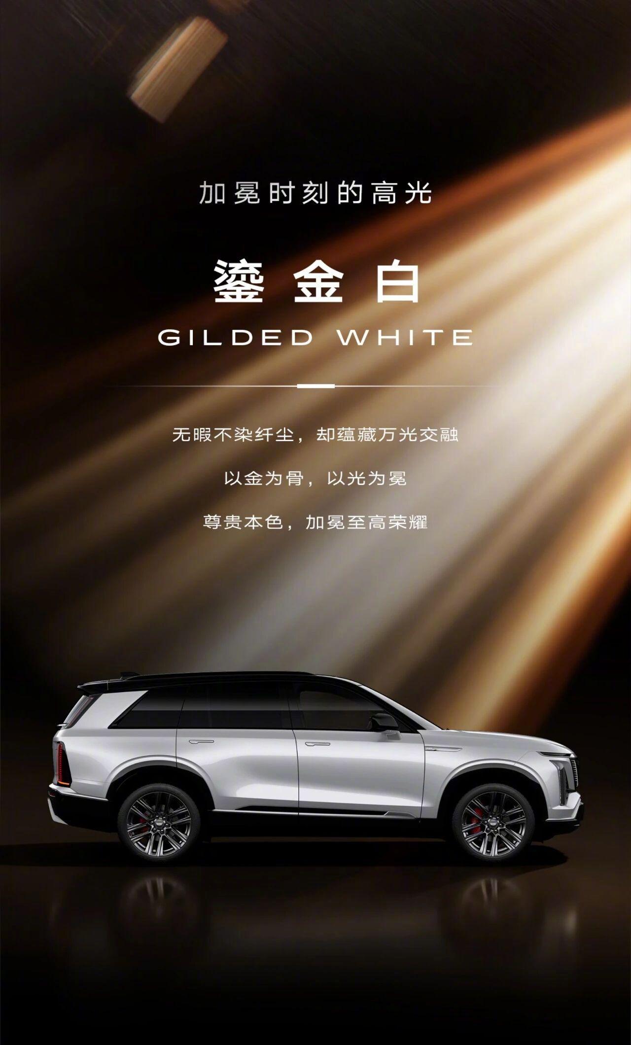 凯迪拉克公布全尺寸纯电公路SUV凯威德的5款车身颜色,鎏金白、曜夜黑、暗影绿、风暴灰、皇家蓝。这还考虑啥,曜夜黑首选。有句话叫白()黑()黑白通吃凯雷德【来自懂车帝车友圈】