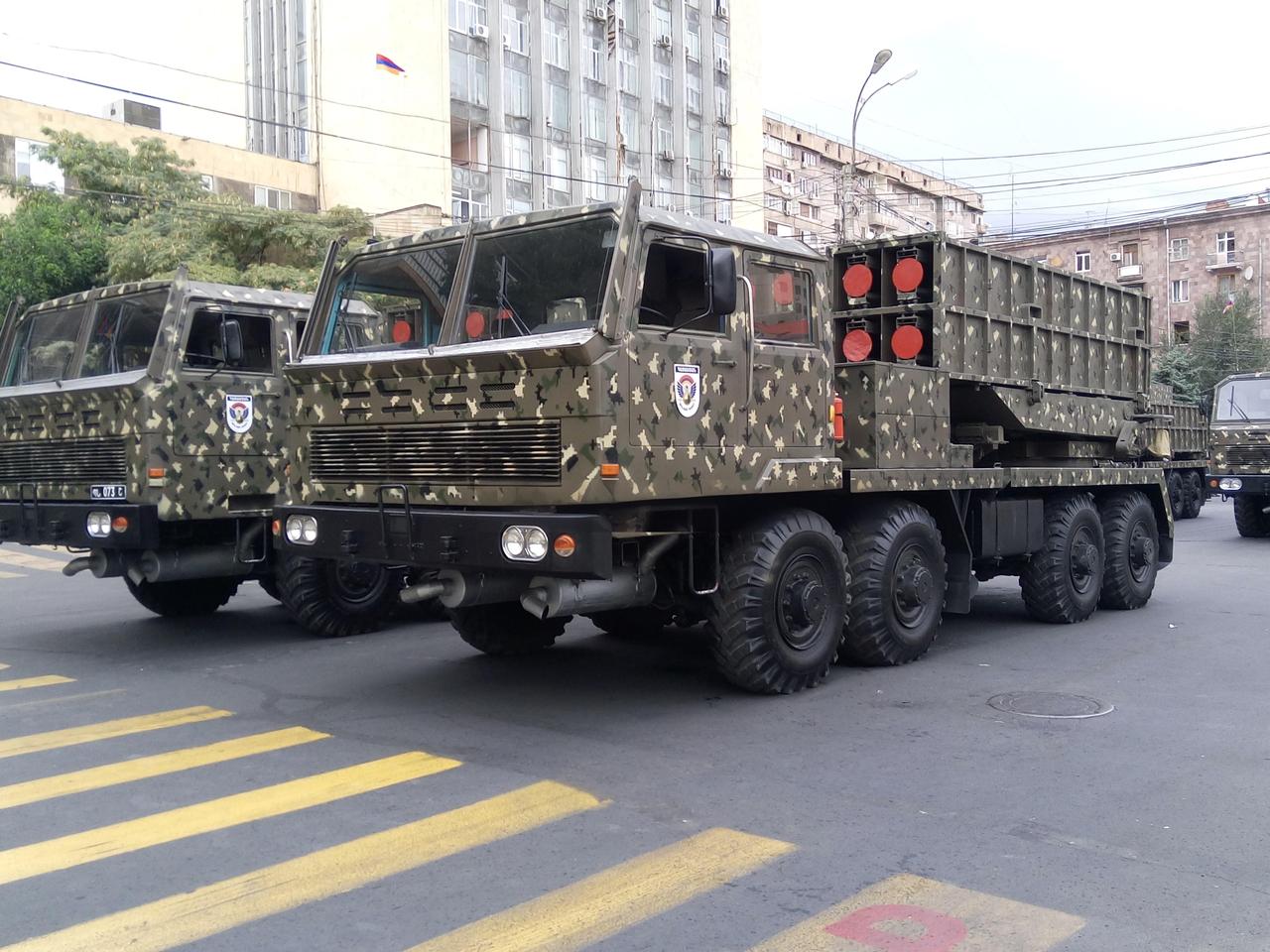 当年咱们没装备,不过出口型卖得还不错——WM-80 273 毫米轮式自行火箭炮由北方工业(NORINCO)在83 式 273 毫米履带火箭炮基础上改进而来,1990 年代初启动研发,1995 年 10 月通过技术鉴定定型。 核心改进为泰安 TA580 8×8 轮式底盘、8 联装模块化发射箱、射程提升至80 千米、配简易火控与快速装填系统。 该型火箭炮未正式列装,作为外贸型号推向国际市场。1999 年向亚美尼亚出口8 套(也有说是 4 套,参见图4),作为该国的主力远程火箭炮曾参与纳卡冲突;此外无其他公开出口记录。之后,其改进型 WM-120(射程 120 千米)于 2010 年出口约旦 24 套(参见5~6)。