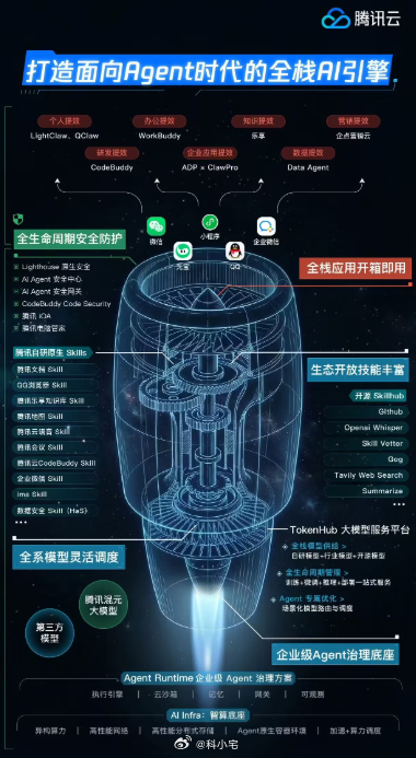 腾讯首次公布Agent养虾产品全景图,构建了从个人到企业、从基础设施到上层场