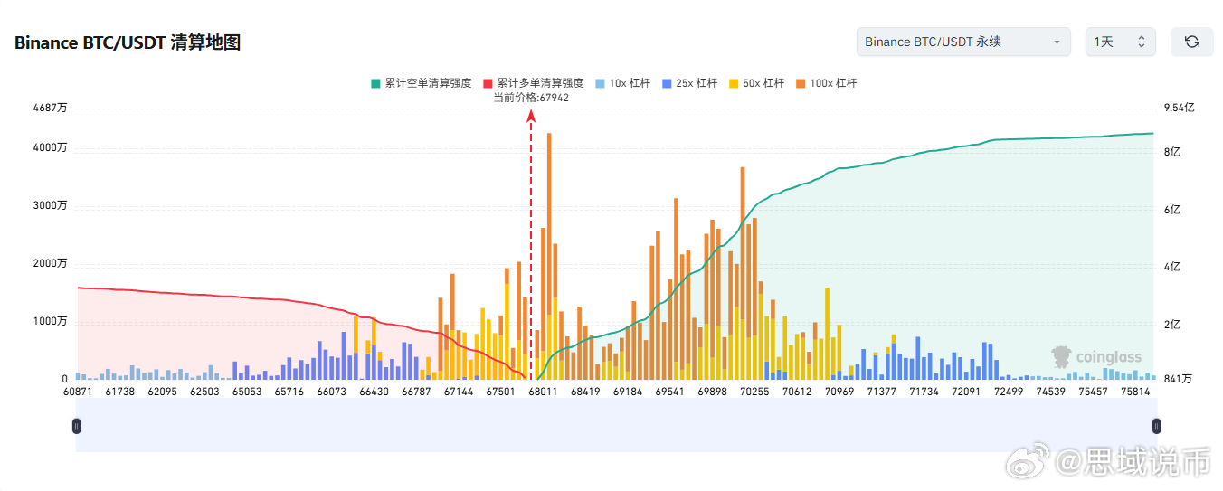 反之,若比特币突破 6.9 万美元,主流 CEX 累计空单清算强度将达 6.38 亿。