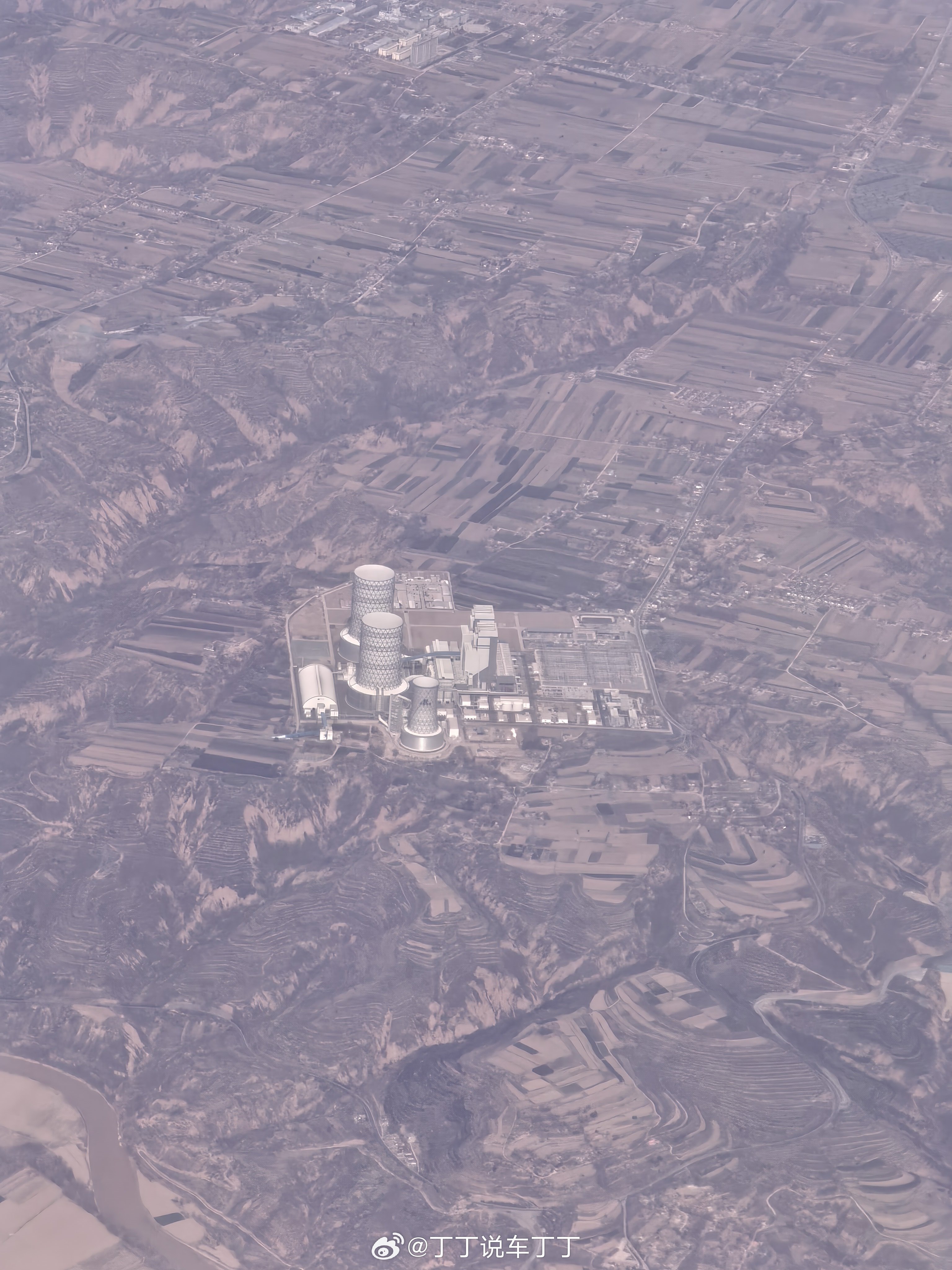 刚刚从飞机上拍的,大山中孤零零几个大柱子,挺壮观