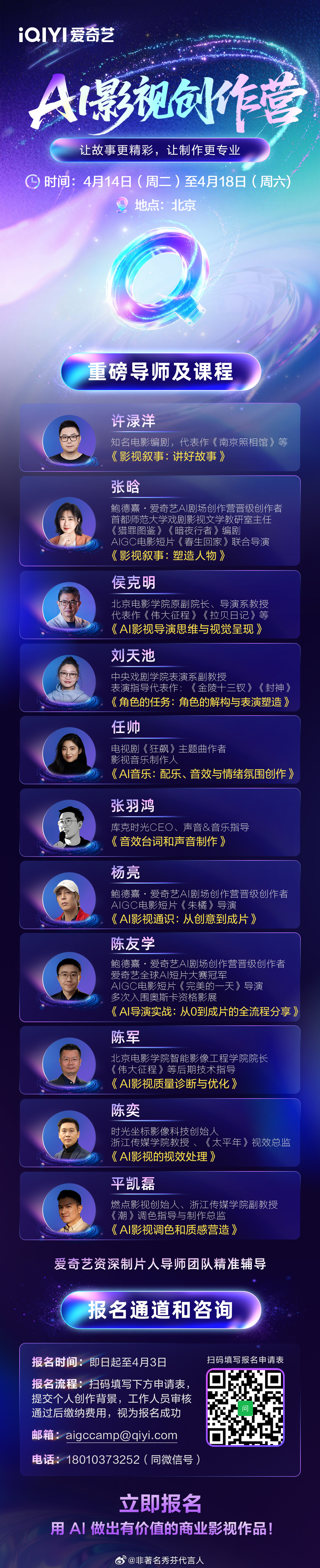 爱奇艺ai影视创作营好消息!那个追剧离不开的爱奇艺,开AI影视创作营了!不是讲座!不是空谈!是真的带你用AI做片子!