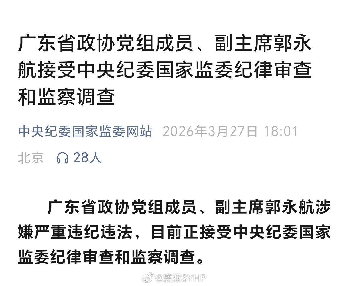 郭永航被查广东省政协党组成员、副主席郭永航接受中央纪委国家监委纪律审查和监察调查