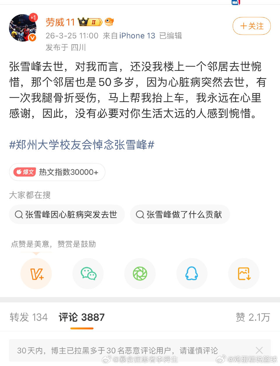 天上的牢大不说话,地上的娃娃想曼巴。这么多年了,极端强碱饭的球迷还是没脑子张雪峰女儿缅怀爸爸