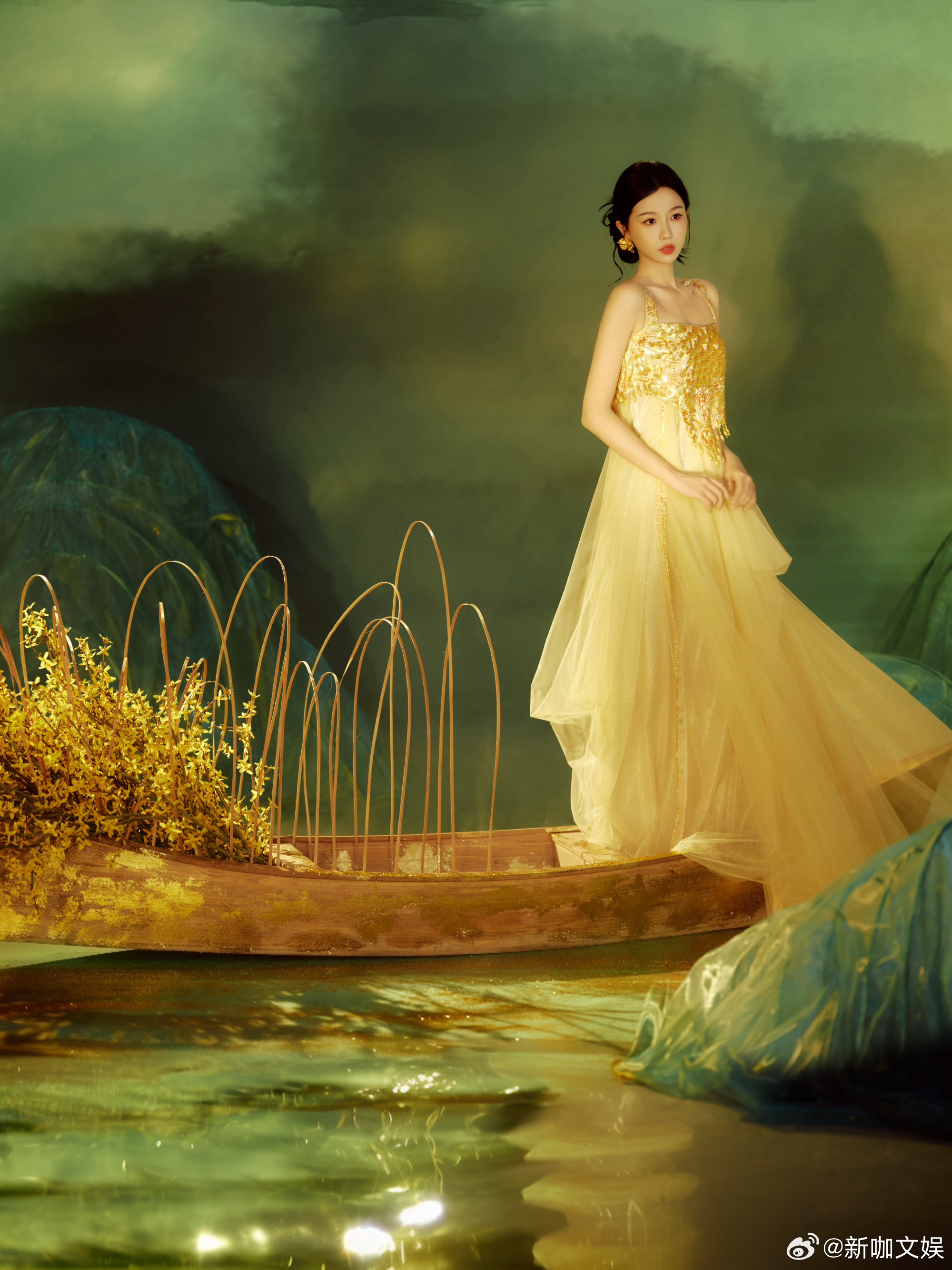虞书欣今日出席活动造型虞书欣新中式金色亮片裙装谁被欣欣子的活动造型美到了!新中式金色亮片薄纱裙上身,灵动优雅兼具,一举一动都自带氛围感~