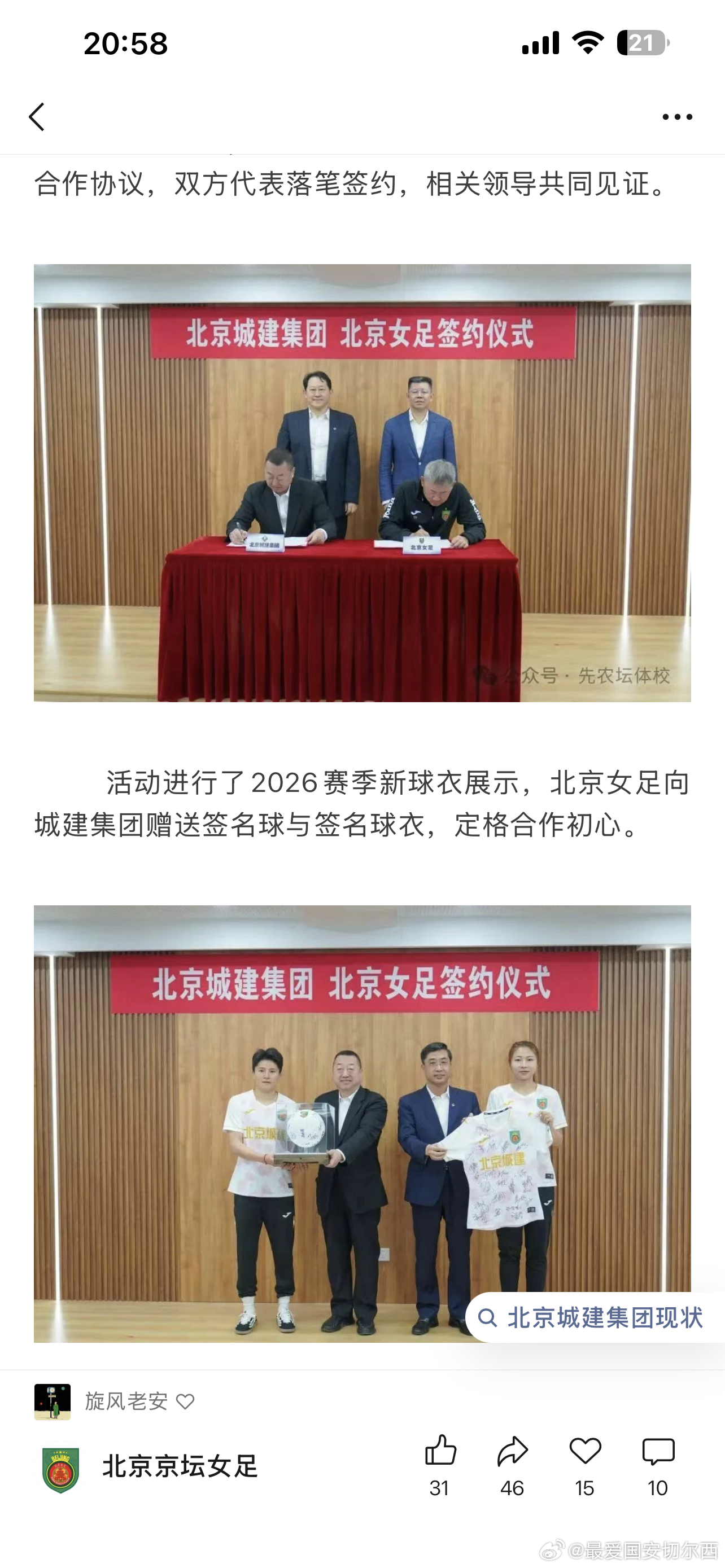 20多年前,一开始看北京女足,记得就是北京城建女足,20多年后,北京城建女足又回来了,新的赛季,新的征程,希望联赛、足协杯、全锦赛、亚冠都能取得好成绩
