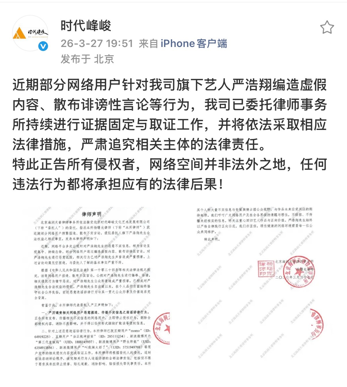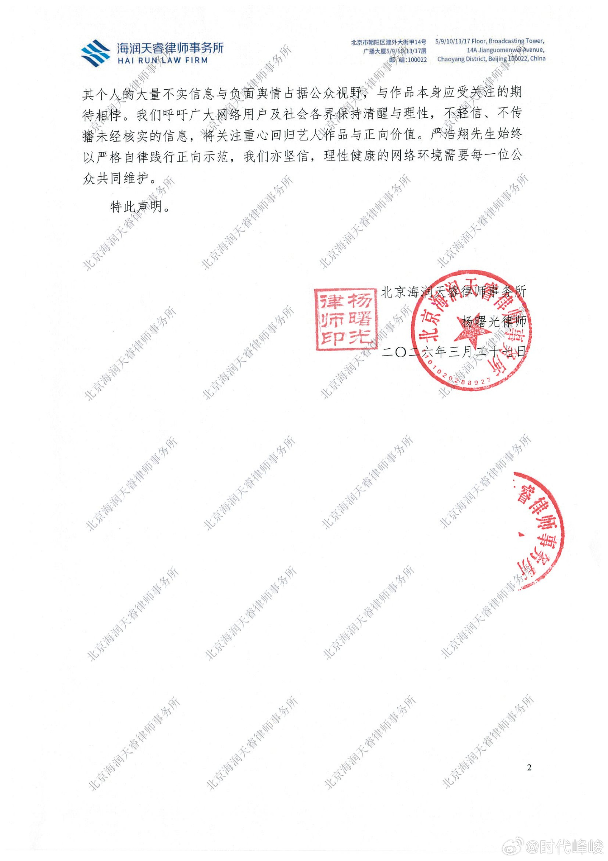 时代峰峻发声明回应严浩翔ktv传闻时代峰峻否认严浩翔ktv传闻时代峰峻回应严浩翔