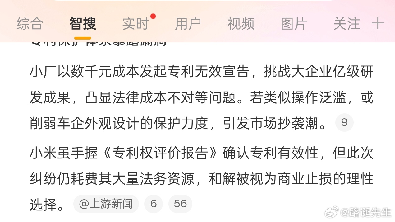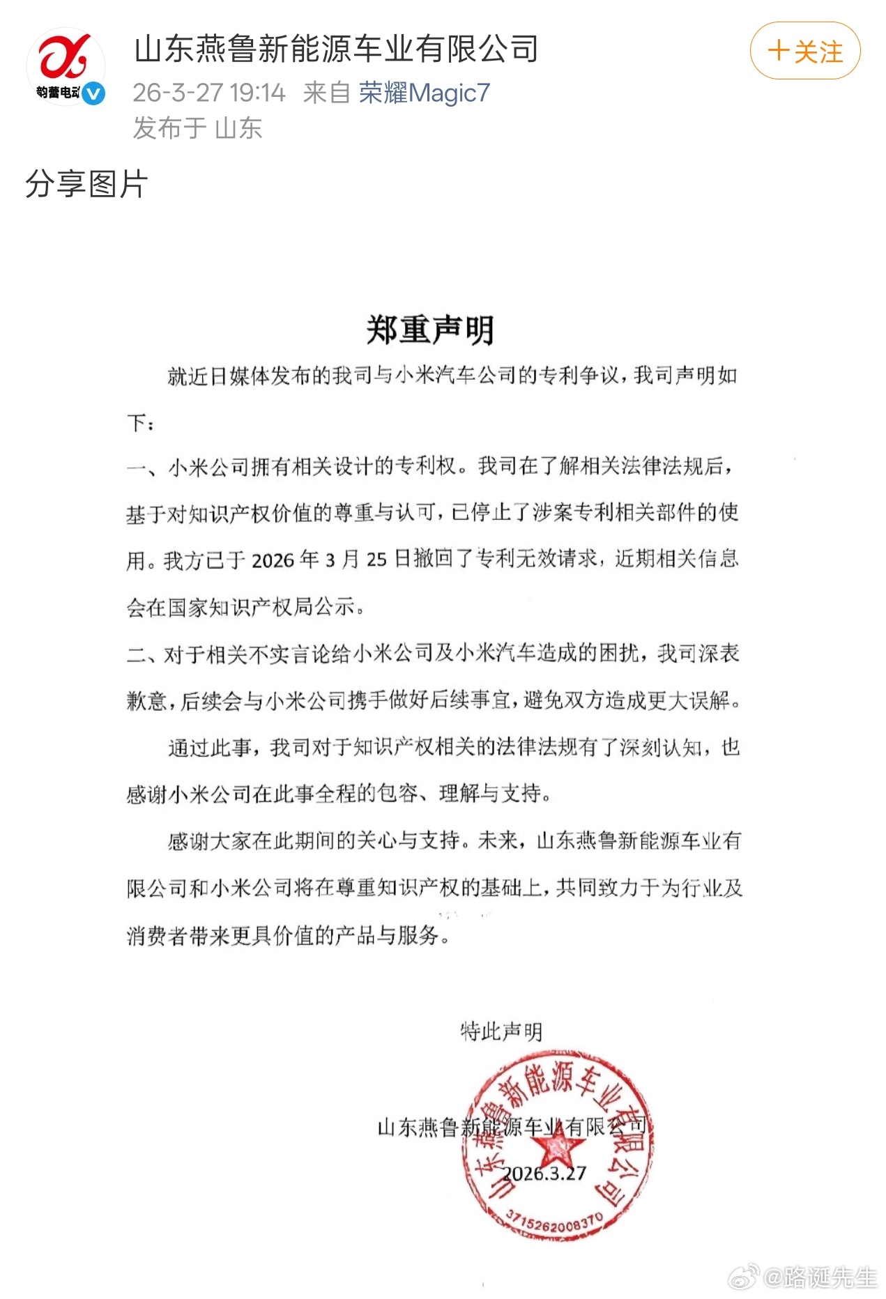老头乐向小米汽车致歉事实上就是这家企业看上了小米汽车的设计,但没有相关专利,所以通过向国家知识产权局申请,宣告小米SU7/YU7车型的三项外观专利无效。这本来是一场赤裸裸的碰瓷,却被无良媒体曲解成小米被“起诉”,搞得好像小米侵权别人了。