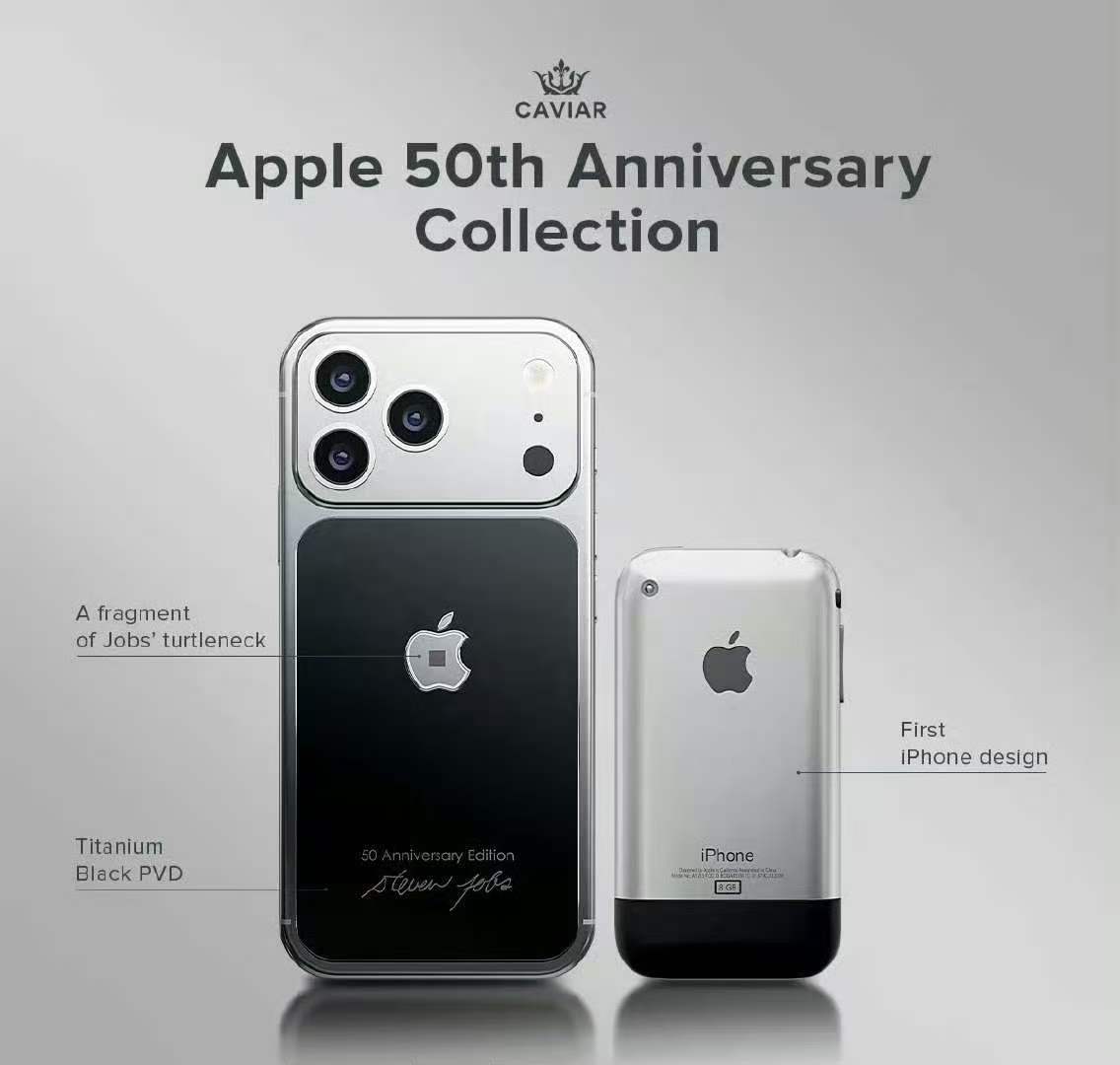 乔布斯定制版iPhone17Pro推出 这哪是手机,这分明是装着乔布斯精神的“时间胶囊”啊!Caviar为苹果50周年做的定制款,全球只限量9台。黑银双拼配色致敬初代iPhone,背面还刻着乔布斯的亲笔签名,最绝的是钛金属Logo里封了他那件三宅一生黑色高领毛衣的碎片,连来源都有证书认证。这已经不是一台普通的iPhone了,是科技圈的顶级收藏品,是把乔布斯的极简主义和传奇人生封进了手机里。