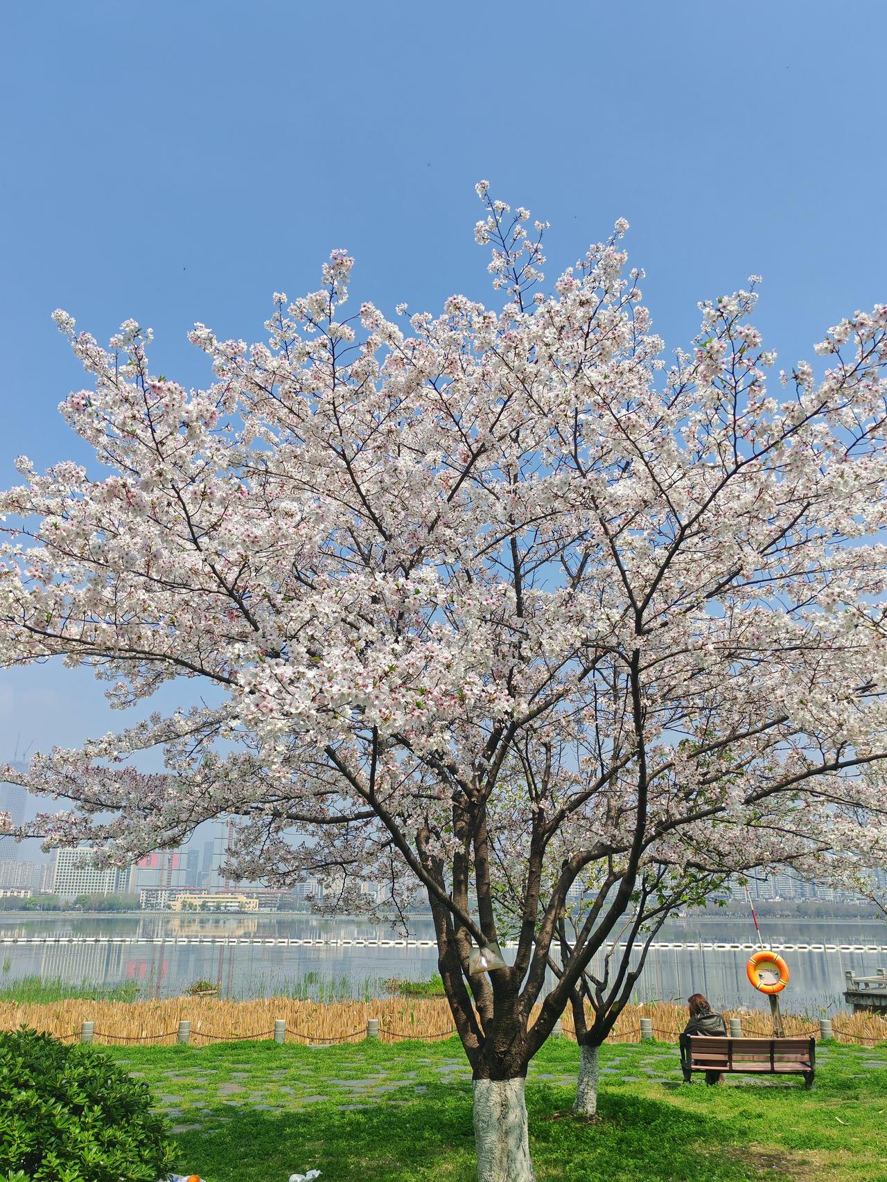 晒图笔记大赛这棵樱花树真美!沙湖公园的湖边,坐在树下发呆,惬意时光,莫过如此。