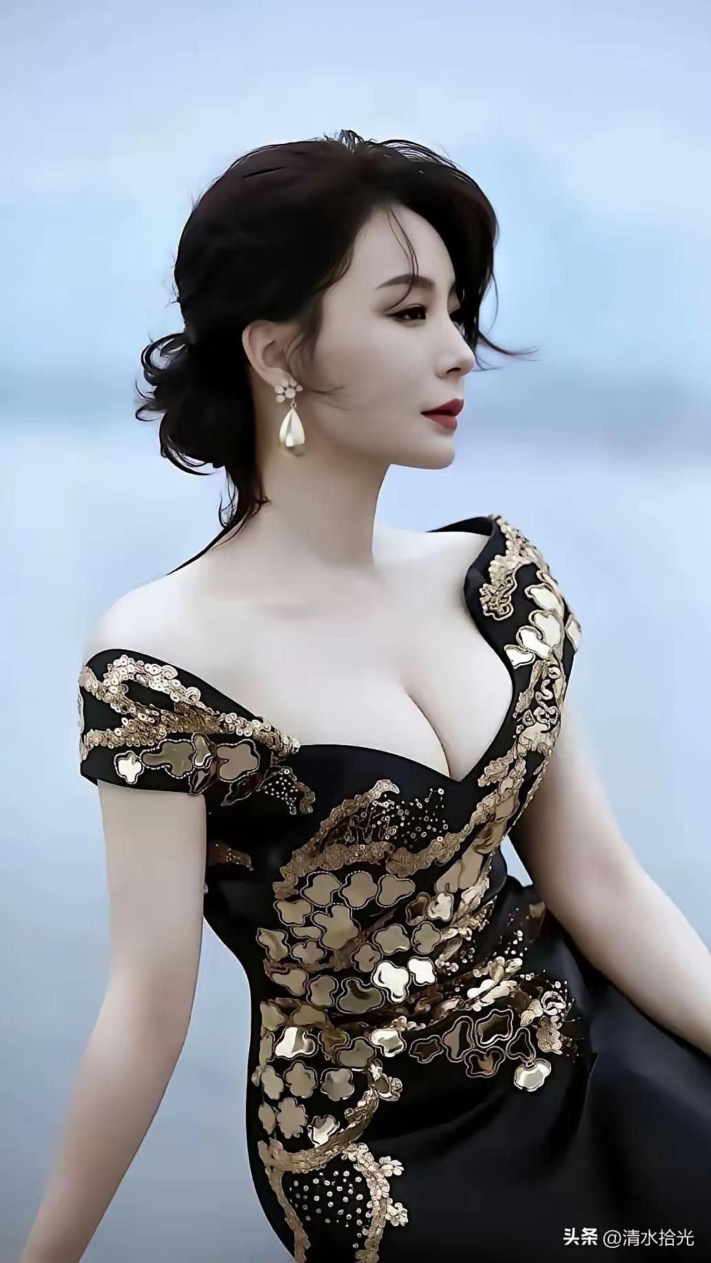 被陈数狠狠惊艳!黑金刺绣裙勾勒丰腴曲线,这才是成熟女人的顶级魅力