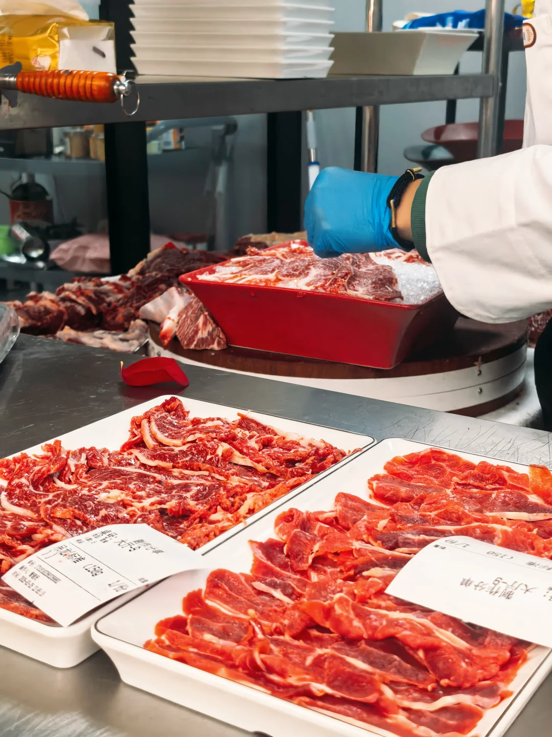 可以看到厨师处理不同部位的肉🥩