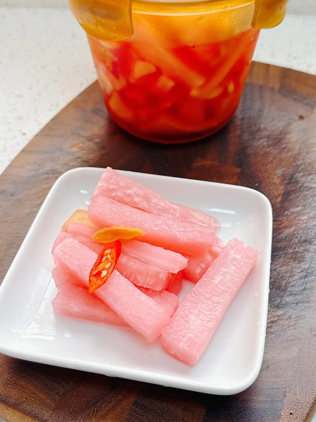 我们家小泡菜基本上是没有停过的,最近又做了一波,用了大红浙醋代替白醋,颜色更好看,味道还比白醋的更清爽清甜,白醋泡出来的总有点冲劲。分享一下做法,非常简单,可以把萝卜换成包菜、莴笋、儿菜、胡萝卜等等。