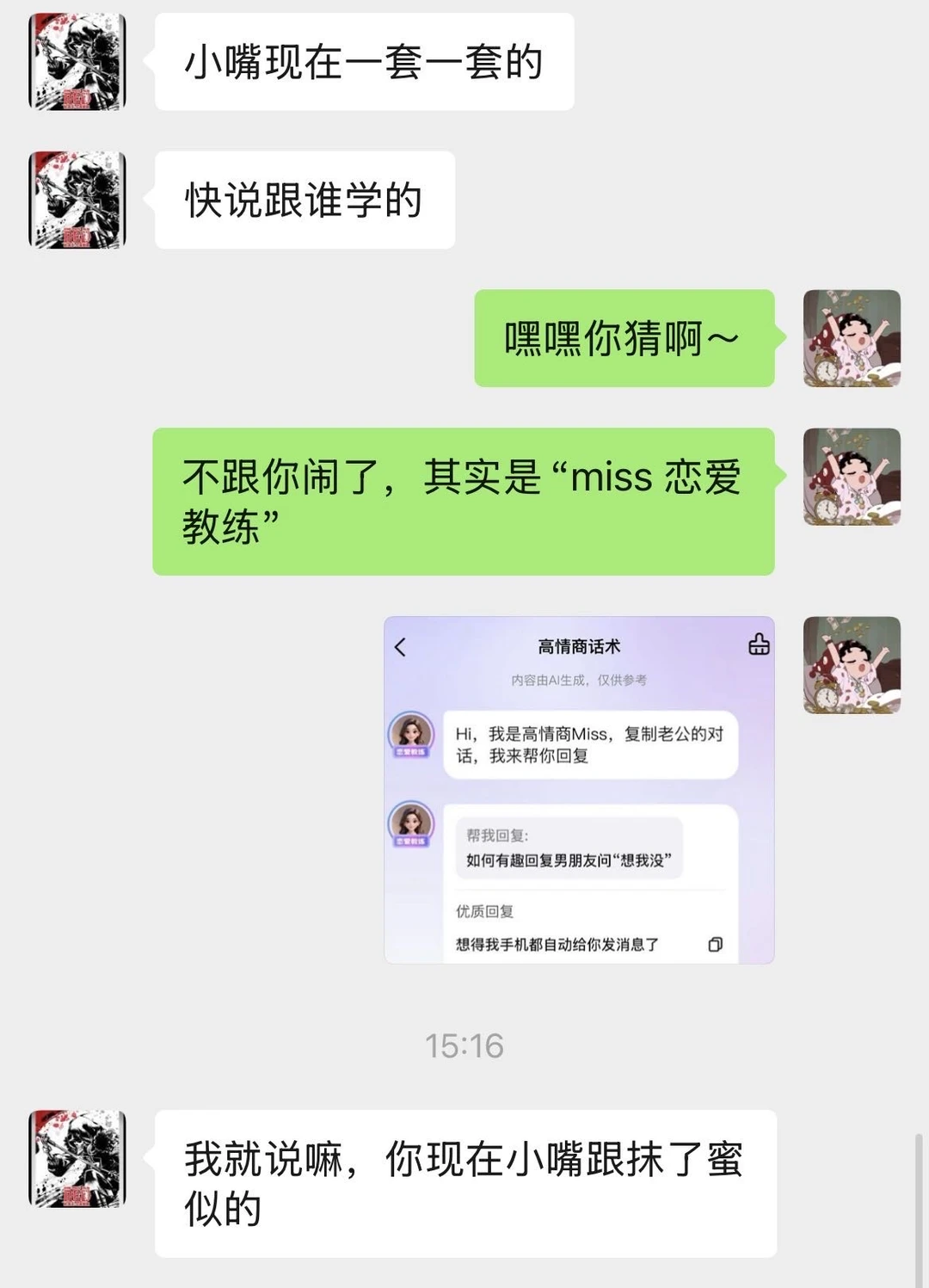和男朋友玩抽象玩多了, 男朋友居然问这种问题,一时间不知道怎么回 还好有miss恋爱教练 再也没有我不会接的梗, 不管是暧昧、约会、破冰、升温,全部轻松拿捏