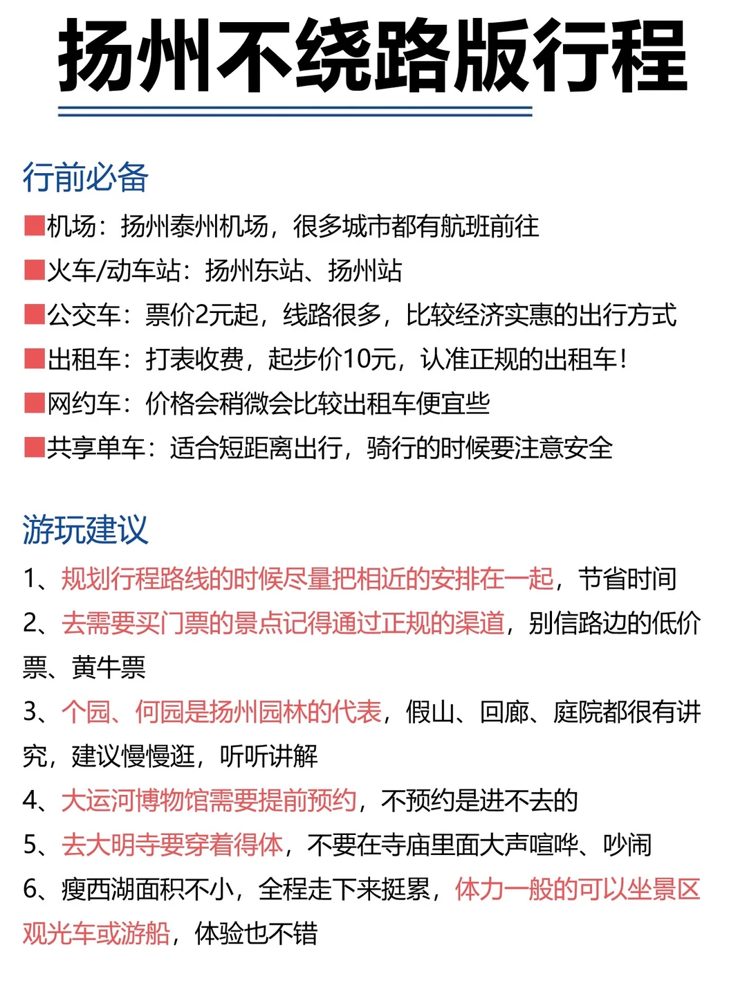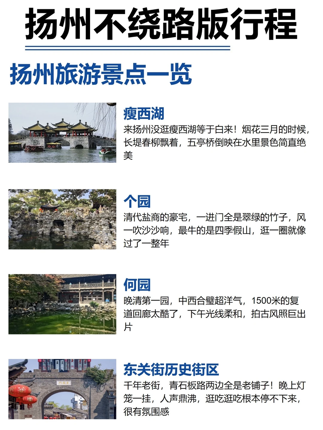 4-5月计划去扬州的姐妹们看过来,刚从扬州回来,扬州很美💕,但是不得不说不好好做攻略真的很容易踩坑!给大家总结了些干货,可以码住慢慢看~