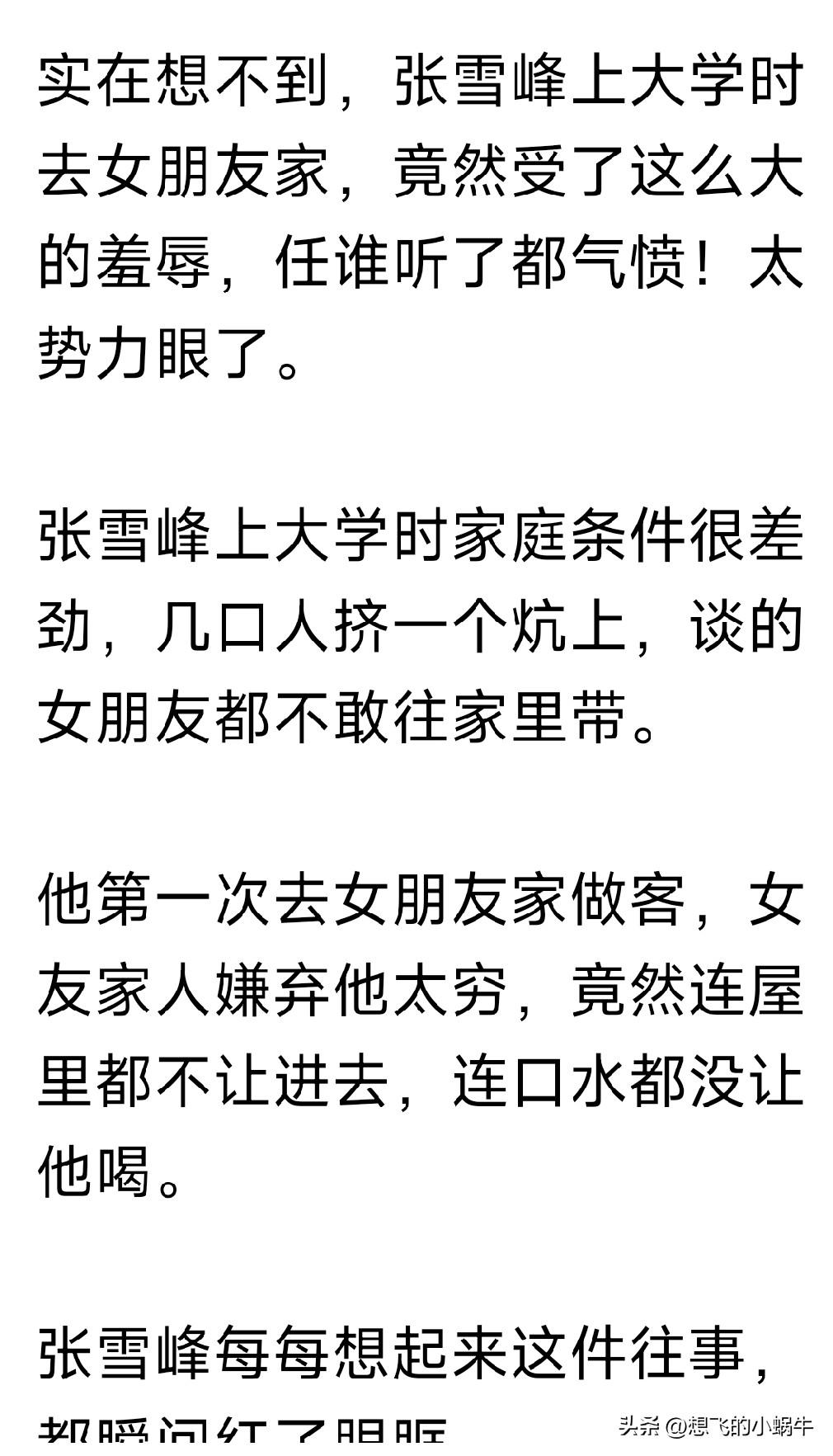 刚看到一篇文章说,张老师被前女友家人嫌弃穷不让进家门这件事!真是感慨万千!因为这样的事也发生在我身上过! 我是女的,当时也是被人嫌弃家庭条件和自身条件筛选剩下的大龄剩女,那会因为家庭变故没有人去我家提亲,也是一路辛酸,在外面靠我自己,虽然有男孩子追,但是我内心自卑啊,不敢谈啊! 后来谈了两个,一个嫌弃我没妈妈,一个家人没素质,打心里看不起我!才有了我现在的老公,我老公家跟我家一样穷,我们两个自己靠自己,现在过的也不差! 倒是第一个男的找了个会理发的托尼,曾经看过他女朋友写的qq说说,几句话都是错别字满篇,就说那样的人生出来的孩子会聪明吗[苦瓜],现在一个女人苦哈哈辛苦挣钱养家,那男人啥也不是!所以的他是铁饭碗,铁路局上班的人,经常不发工资,而且他那个人一有钱就去消费,没钱了就可怜巴巴,虚伪至极!谈了没多久,跑出去偷偷约会网友,被我发现死不承认!后来散伙了! 第二个他爹妈费尽心机找更好的女人,为了学手艺找了个装修师父的女儿谈,学到了把人家一脚蹬了,找了个小学老师结婚了,但是男的呢,百分百都不会算,呵呵了!在强大的基因也干不过二的基因啊!嫌弃我年龄比她儿子大,这下好了,做装修不干了跑的到处打工,最后一次联系是在山西的大山上种树!过的苦哈哈的! 倒是我老公,虽然家里穷,可人家上进,加上我会规划我也非常支持他,愿意在家带孩子做他背后的女人,他慢慢工作越来越好,孩子也被我带的很好也聪明懂事!小日子过得越来越好了!并且我自己也上进啊,学了手艺,我心想万一哪一天孩子大了懂事了我就可以做我自己的事情多赚点钱了! 所以人啊,真的是莫欺少年穷,莫把一时的运势当做一辈子的运势!莫看不起任何人!人还是要自己努力打拼并不是一辈子要靠父母要算计别人才能把日子过好的!所以我很庆幸我不是恋爱脑!没有死缠烂打,要不然跟他们两个任何一个都会离婚的!因为我看不起自己不努力还虚伪至极的势利眼男人!!