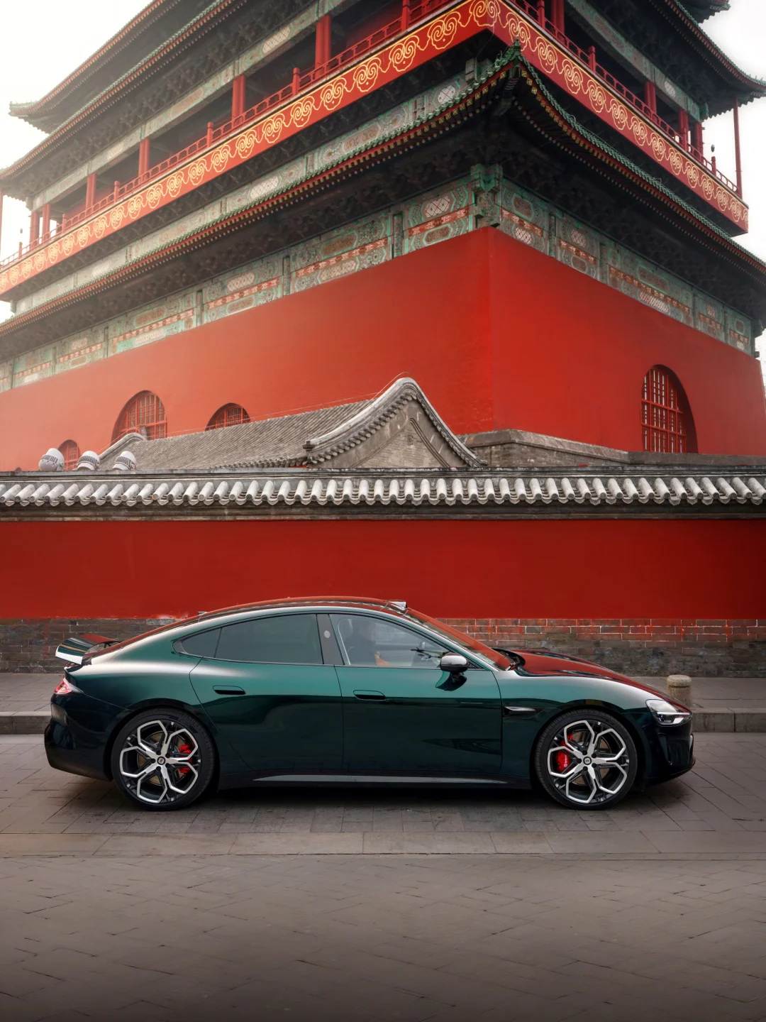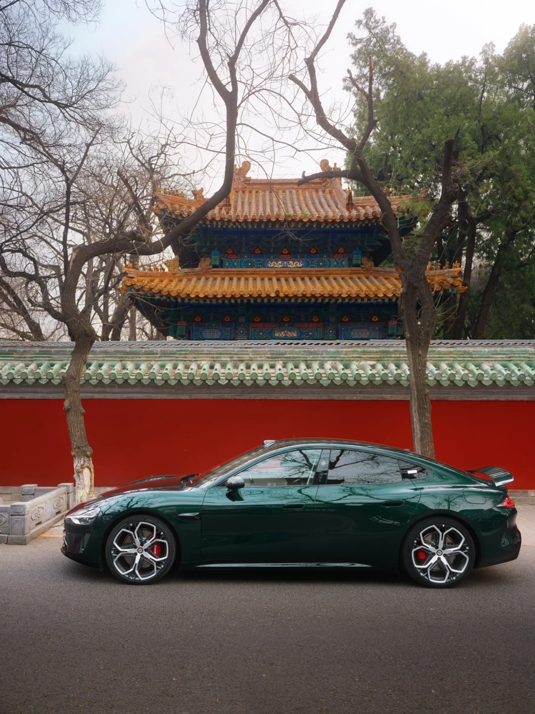 这款靛石绿车色自然散发沉稳内敛的气质,不失尊贵气场。既有着冷静、理性的雅致质感,又暗藏着蓄势待发的力量感,有种想低调又无法真低调的拿捏。驾驶着它穿梭在北京的街头巷尾,古韵与科技浪漫相得益彰。