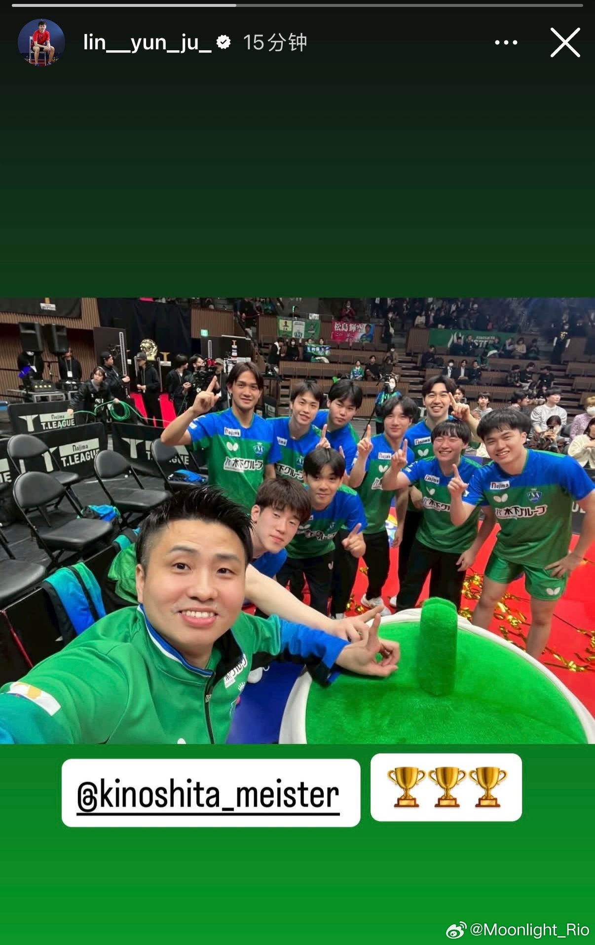 T联赛现场解说山崎雄樹与林昀儒的合影📸“季后赛MVP授予了在双打和单打中取得2