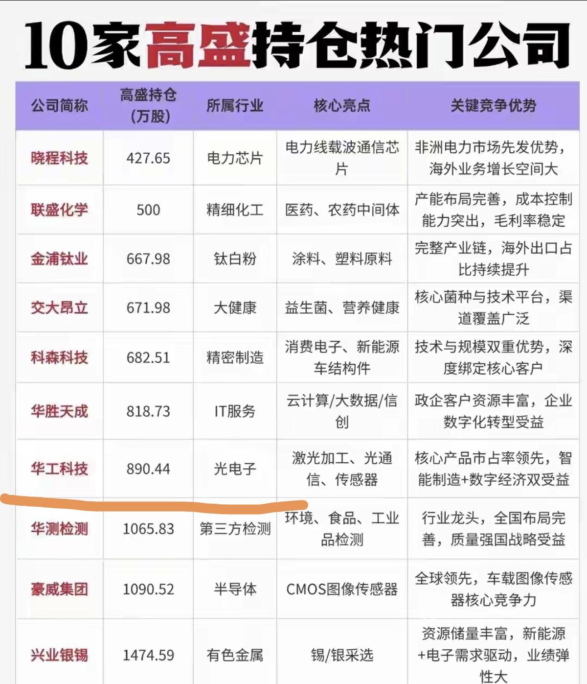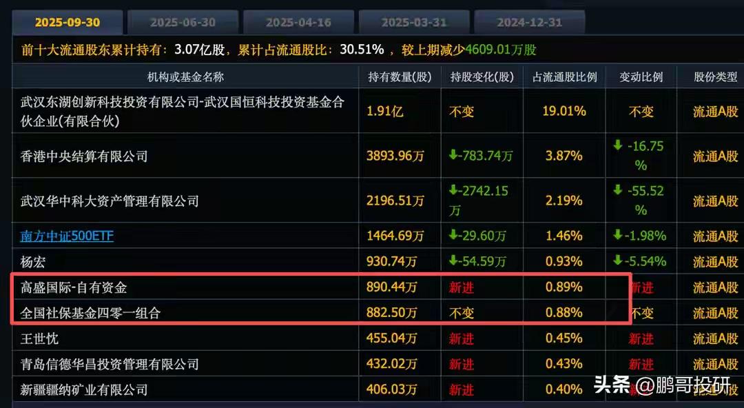 人家早跑了,还激动得看高900多元 华工科技年报出来了,三季度股东名单里持股890万的高盛不见了。参考四季度前十股东名单,排名靠后的仅仅300万多点,可见高盛在三季度减仓数量还是挺大的。 铺天盖地的小作文把890挂在醒目位置,可仔细研究一下,都是过去式。