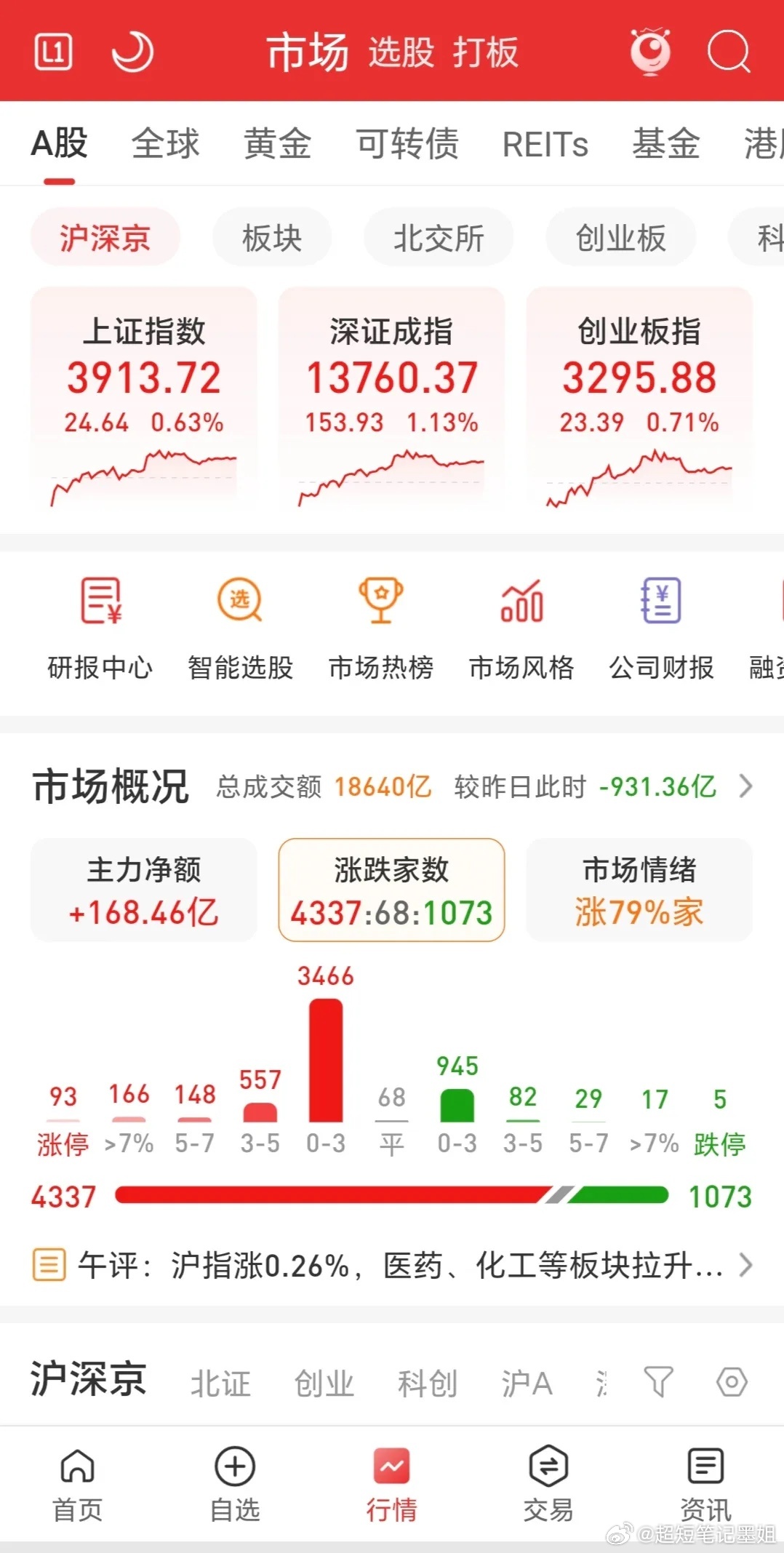 三大指数集体收涨,市场成交1.86万亿,较昨日缩量超900亿,涨跌比大于4:1,涨停93家,跌停5家,市场情绪些许过热。