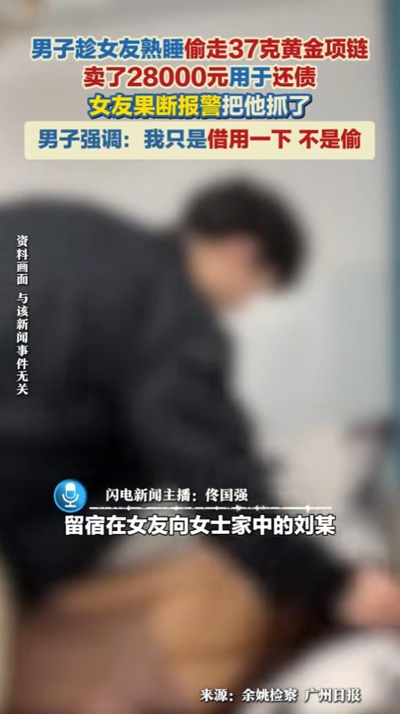 白嫖还有理了?2025年5月,浙江,一男子在女友家留宿,他趁女友熟睡时,偷走了37.82克金项链,卖了近28000元,最后被女友发现果断报警,面对检察官讯问,男子竟反复强调自己只是借用一下,不是偷!网友:脸呢? 2025年5月16日,浙江余姚男子刘某像往常一样留宿在女友向女士家中,谁也没想到,这场看似平常的留宿,会演变成一场背叛信任的盗窃。 当时刘某身负外债,被催债逼得紧,看着熟睡的女友,他鬼迷心窍盯上了向女士放在首饰盒里的金项链,心里盘算着对方平时不常戴,拿走了大概率不会立刻发现。 于是他趁着向女士睡得沉,刘某轻手轻脚打开首饰盒,偷走了那条37.82克的金项链。 得手后他立马在网上联系了黄金收购商,把项链卖了近28000元,这笔钱全部被他用来偿还外债。 之后为了不让事情败露,刘某还特意网购了一条外观相似的假项链,找机会悄悄放回首饰盒,玩了一手偷梁换柱。 接下来的几个月,向女士一直没发现异常,直到10月3日,她想戴项链出门,拿出来时就觉得不对劲,假项链色泽、质感都和真的差远了,拿在手里轻飘飘的。 她赶紧翻出当初买项链的凭证和照片,仔细一对比,确定自己的真项链被人调包了。 向女士第一个怀疑的就是男友刘某,毕竟她知道对方欠了不少钱,平时就有点手脚不干净。 她直接打电话质问,刘某一开始还吞吞吐吐,只说给她买条新的就算了,这含糊的态度彻底坐实了嫌疑。 向女士没惯着他,当即选择报警,刘某见瞒不住了,才主动到公安机关投案,事后也赔偿了向女士的损失,取得了对方的谅解。 可到了检察院讯问环节,刘某的态度又变了,他拒不承认自己是盗窃,反复辩解自己和向女士是恋爱关系,经济往来密切,只是缺钱拿项链应急,等有钱了就会还回去,坚称这是借用不是偷。 更让人无语的是,调查发现刘某根本不是初犯,2025年2月20日,他就因盗窃罪被余姚法院判了有期徒刑一年十个月,缓刑二年,这次偷项链的行为,正好发生在缓刑考验期内。 法律面前容不得狡辩,最终法院撤销了他之前的缓刑,加上这次盗窃的刑期,合并执行有期徒刑二年五个月,还处罚金一万六千元。 这事说起来真让人唏嘘,情侣之间最珍贵的就是信任,可刘某却把这份信任当成了行窃的便利,偷了最亲近的人,事后还试图用“借用”洗白,实在让人不齿。 信任一旦被踩在脚下,不仅感情没了,还要搭上自己的自由,得不偿失。 有网友直接怒斥:“真是刷新三观,偷最信任自己的人,还好意思说借用,脸都不要了!” 也有网友理性评价:“情侣之间有经济困难可以直说,用盗窃的方式解决,既违法又寒了对方的心,活该被判刑。” 对此您有什么不同的看法,可以在评论区留言讨论!!! 信息来源:《男子趁女友熟睡偷走37克黄金项链!卖了28000元用于还债,并网购假项链调包。女友果断报警把他抓了!男子强调:我只是借用一下,不是偷。》闪电新闻