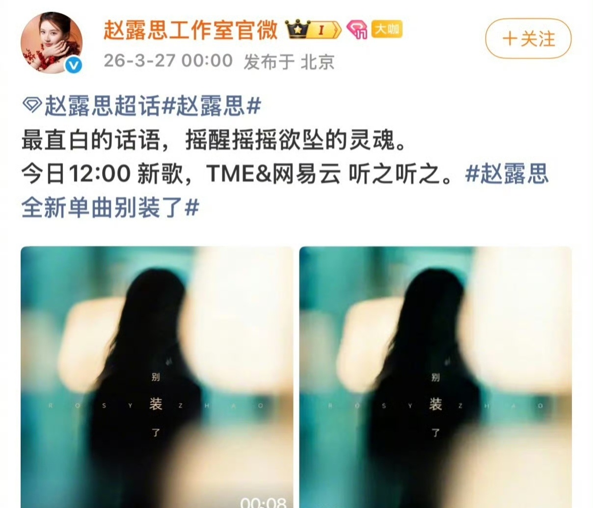 赵露思发新歌又上热搜啦~上一个有这种待遇的还是周杰伦