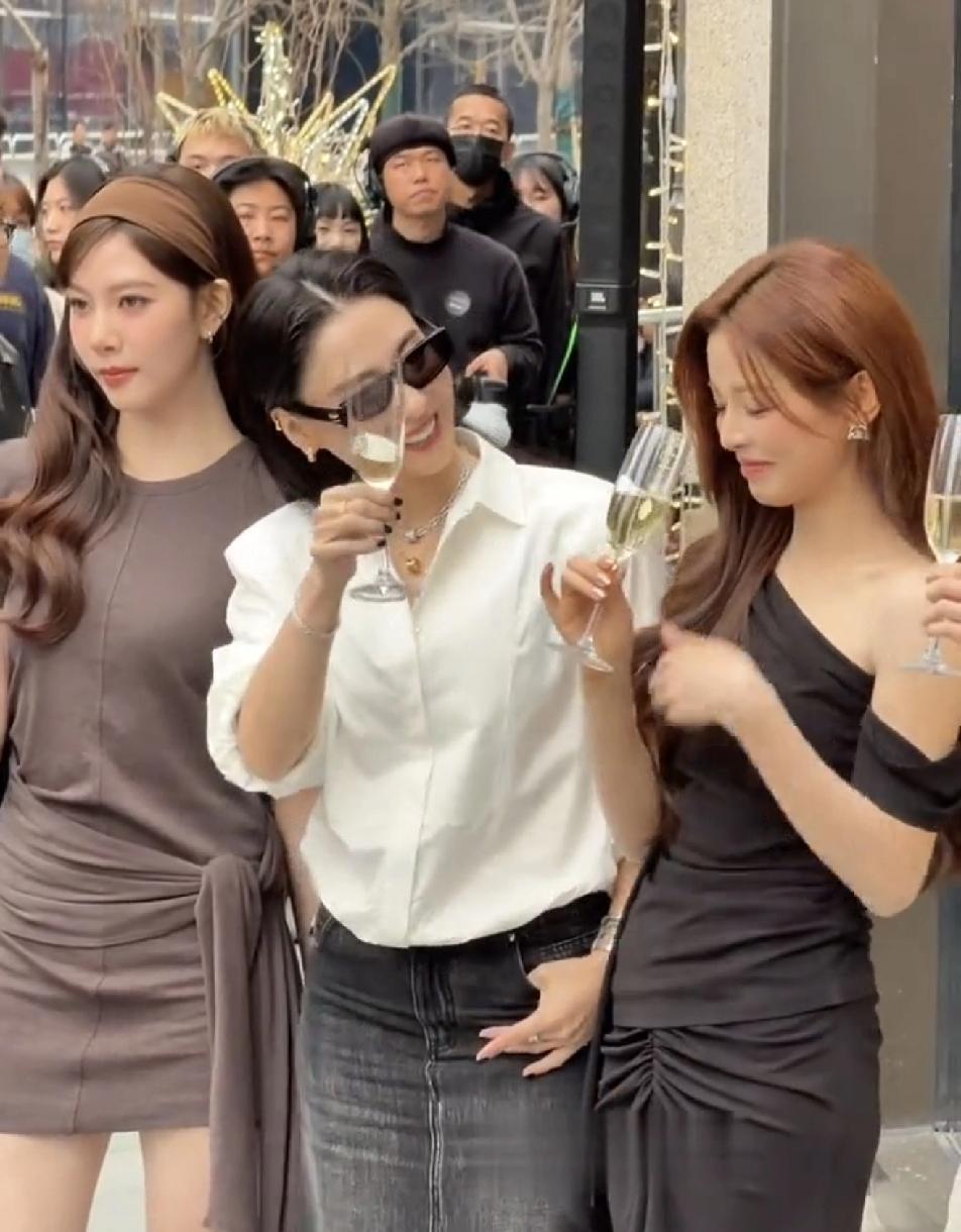 杨超越关于礼仪社交这块儿还是要注意点的,你看宋妍霏和张柏芝碰杯的时候,会弯下腰且把杯子放的比张柏芝的杯子低很多,杨超越则一手拿着杯子,挺着身子和张柏芝碰杯,杯身和张柏芝持平,其实和前辈碰杯,多少还是要谦卑一点的,杯子尽量放低点,宋妍霏明显懂得这个道理。合影环节,也不知道杨超越怎么了,时不时的捂嘴偷笑,其他人都在正儿八经的营业,只有她嘻嘻哈哈的。怎么说呢,傻大姐风格也得看场合,为品牌做活动尽量还是认真营业,毕竟娱乐圈是个大名利场,有礼有节总不会出错,超越妹妹在社交礼节这方面的欠缺,团队还是得适当的关注一下!