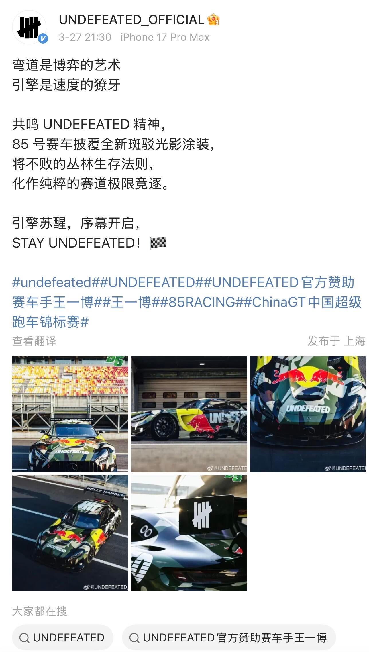 王一博 红牛 6张图undefeated 5张图海丽汉森 4张图都把自家logo展示的最大,各种角度炫耀展示,品牌开竞 三位爱妃都很美~85racing王一博出发上海参加赛前测试