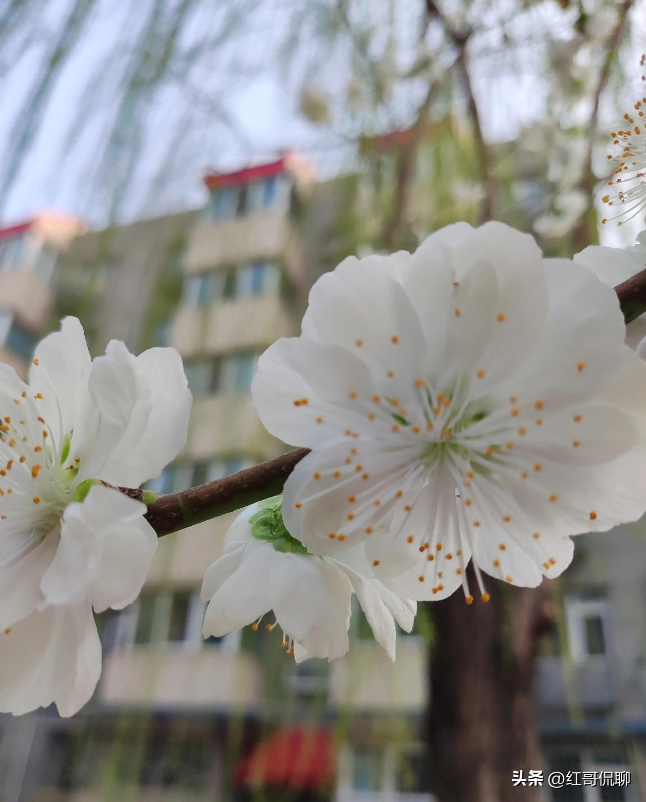 你能清晰区分李花和杏花的关键特征吗? 1. 花的着生&花梗:李花常3朵并生、成簇开放,花梗长1–2cm;杏花多单朵贴枝开,花梗极短近无,花萼深红色且盛开后明显反折(杏花标志性特征)。 2. 花叶关系:李花花叶同放,开花时已有嫩绿/紫红叶片;杏花先花后叶,满枝繁花时基本无叶。 3. 花型与花色:李花偏小(直径1.5–2.2cm),纯白;杏花更大(2–3cm),初开常带红晕、花苞偏红。 4. 枝条:李枝多偏深褐,紫叶李等品种更明显;杏小枝多红褐色、较光滑。