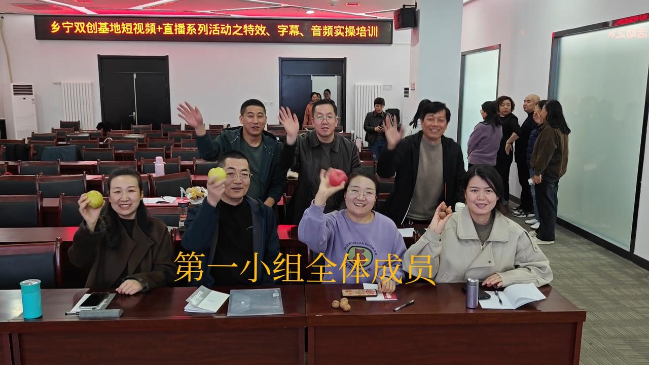 2026年3月23日至27曰,乡宁双创基地短视频+直播培训。主讲老师钮老师(短视频),郭老师(直播),袁老师(AI)。第一小组7名成员。