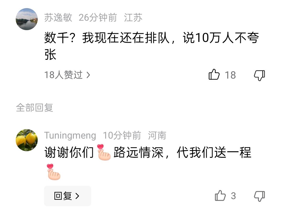 据说十万人自发送张雪峰 有网友说,今天估计有几千人自发送张老师,评论区马上回复,不夸张说,现场有十万人,说自己还在排队呢 确实,很多学子或者学子家长都听过他的直播,了解了很多避坑的信息,终生受用! 张雪峰老师,一路走好!